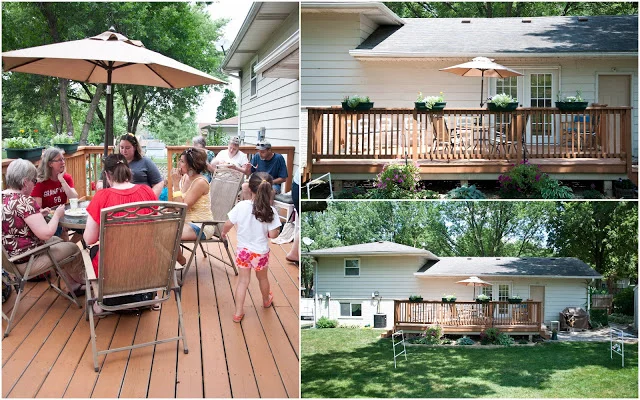 A few of the projects around the house and yard included (but were not limited to) weeding, mulching, planting, cleaning and *drum roll please* STAINING THE DECK! God blessed us with dry weather in the week leading up the party so Gerard could get a few coats on. It turned out a little darker and more orange-y than we expected, but it’s done and we’re not too hard to please. Here are some photos of the deck in use and complete!