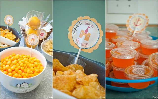 The party morphed in themes and ideas since its inception, but the few things that stuck were the colors-teal and orange with the help of a few free printables online and some ideas from my cousin,