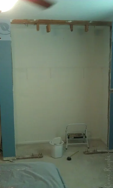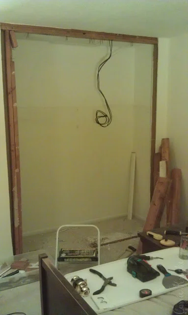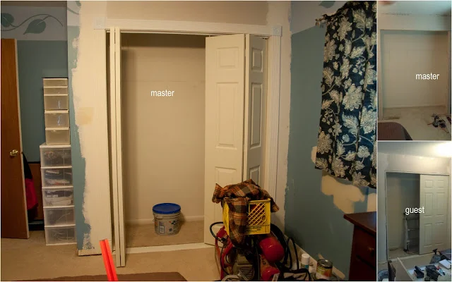 The entire project started with the idea of having a more functional closet space. We knew that included widening the closet door jam because there were feet of space we couldn’t access with clothes in the way. So, with the help of online video tutorials, Gerard set to demolition. Here’s how wide each door jamb was before everything started.
