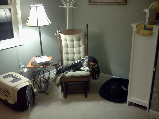 To give you an idea of where everything went while Gerard needed space to work, here’s a Before shot of our bonus (reading) room where Ella sleeps: