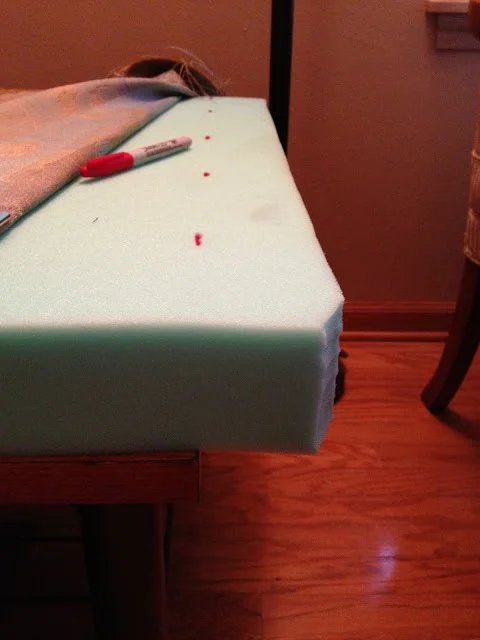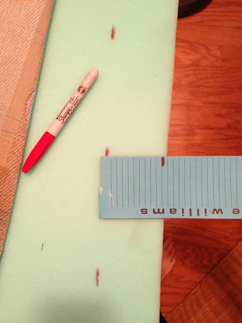 The foam piece was pretty close to the size I needed, but I needed to trim it just a bit. I’m so high tech when it comes to these things-just using a sharpie and a pad of paper….