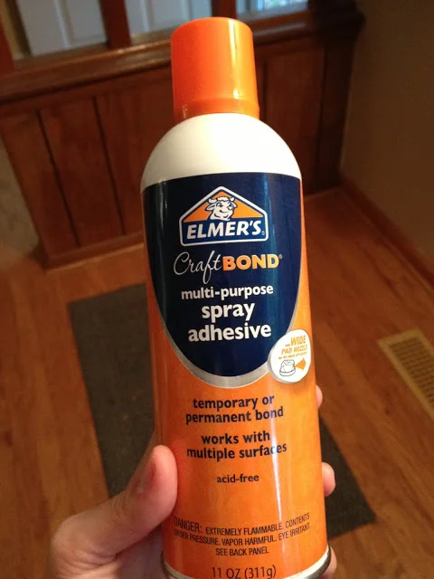 The spray is pretty potent stuff, so I sprayed outside (and also to keep glue from getting on our hardwood floors in the living room…)