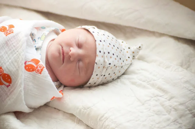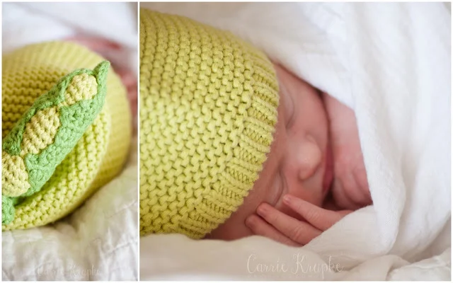 We then did a few with this “sweet pea” knitted cap that Lindsay had on hand and we kept Nora bundled up, nice n’ warm. It didn’t hurt either that they had kicked the heat in the house up a few notches too. 🙂