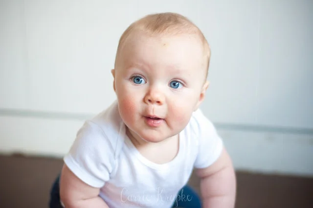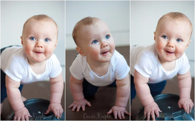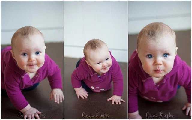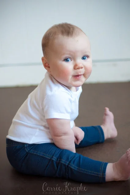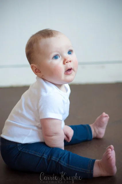 Goodness how time flies! Technically, this is Abigail’s 7 month old session, due to some circumstances that caused us to push things back a bit. But I’m so glad we waited it out because she went from sitting and some crawling to pulling herself up on things in a matter of days (or so her proud Mama, Cindy, tells me)!! That made some props more usable and involved than the typical 6 month session. It’s been since her newborn session that I last saw Little Miss and her adorable rolls and blue eyes amazed me.