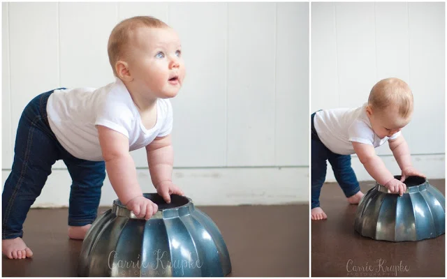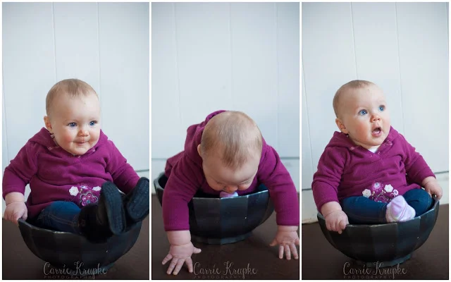 For her newborn session, we strategically placed Abigail into a rounded basket and I thought, for a size comparison, we could do something similar. She loved figuring out how to get down and out of this grey bowl! There’s no way she’d fit into the basket we used when she was