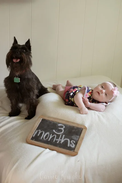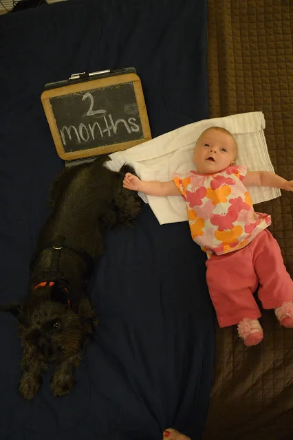 into our lives at the tail end of May and we have photos of Ella meeting her the day we brought her home, but I think these size comparison shots do the purpose justice. Notice that Ella is blurry in the first month photo because she high-tailed it out of there the moment I was done with one click. Adelaide still made her a tad skittish: