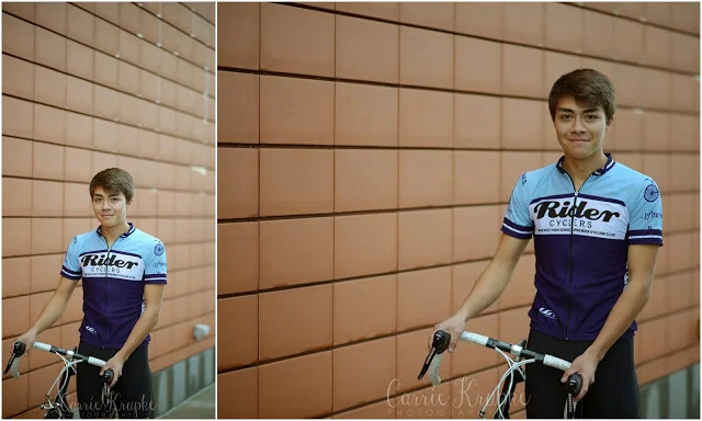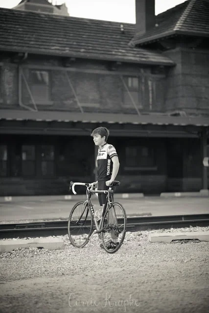 My jaw was proverbially on the floor for the better part of this senior session because I couldn’t believe that a senior in high school took it upon himself to rally the troops of his bicycle team to do RAGBRAI. For those of you that don’t live in this river-bordered state I call home, RAGBRAI is a week-long bike ride that’s done in the stickiest, sweatiest, hottest time of the summer, starting at the Missouri River and criss-crossing the state to dip your wheels in the Mississippi River. Caleb has done that and so it was fitting that we start the session with his trusty, beloved set o’ wheels. 🙂 We finished where he often bikes to train.