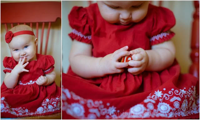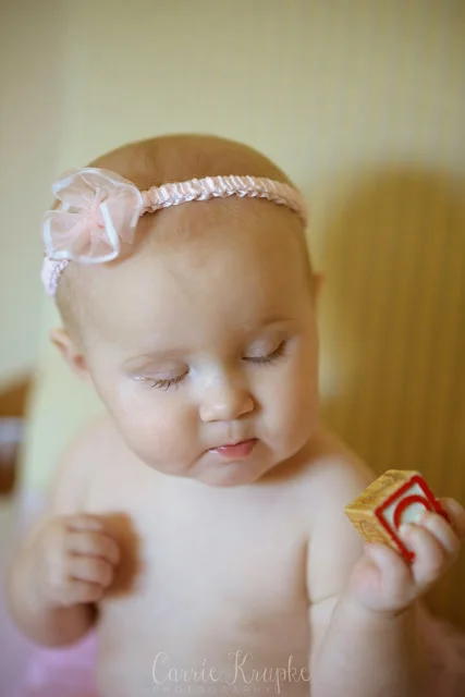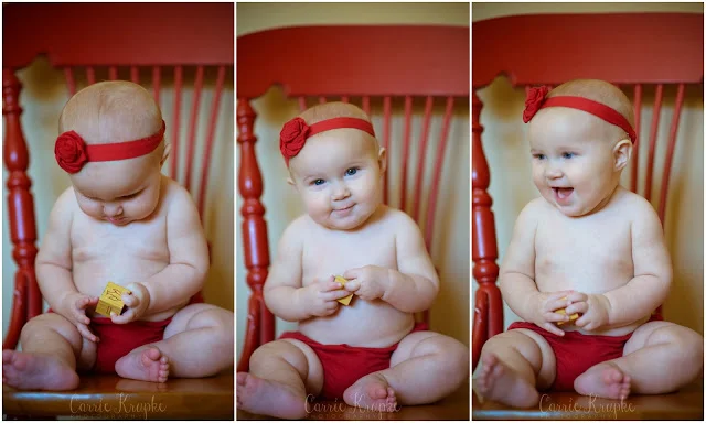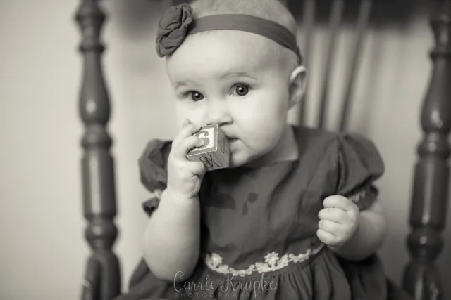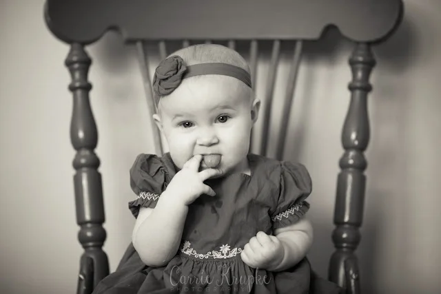 Sweet, sweet Kayla was one of my last (newborn) sessions before I went on maternity leave in May and now she’s a bubbly yet contemplative 6 (actually 7) month old. Her Mama brought one of their kitchen chairs to match the darling dress she had in mind for the session and a few other props that meant a lot to their family. I’ll explain when we get there…