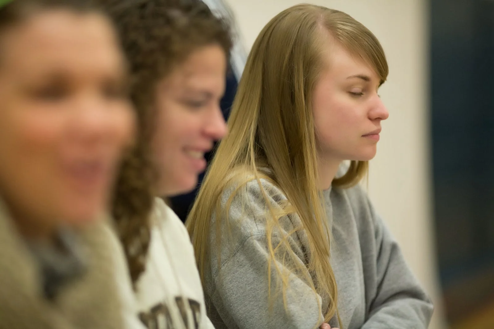 Maybe she’s praying? Yes, that’s it. She’s praying.