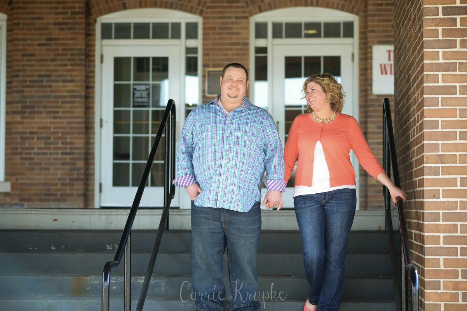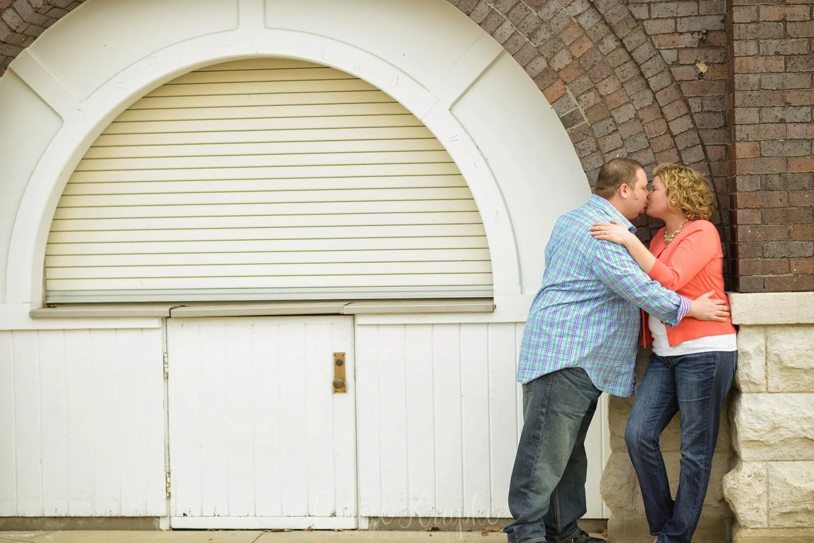 With blustery conditions the day of our shoot, we sought some shelter and break from the wind by the Varied Industries building and I love how the light reflected off the wrap-around porch of the building. (I also love that these two PDA-shy sweethearts got comfortable enough in front of the camera to steal a kiss!)