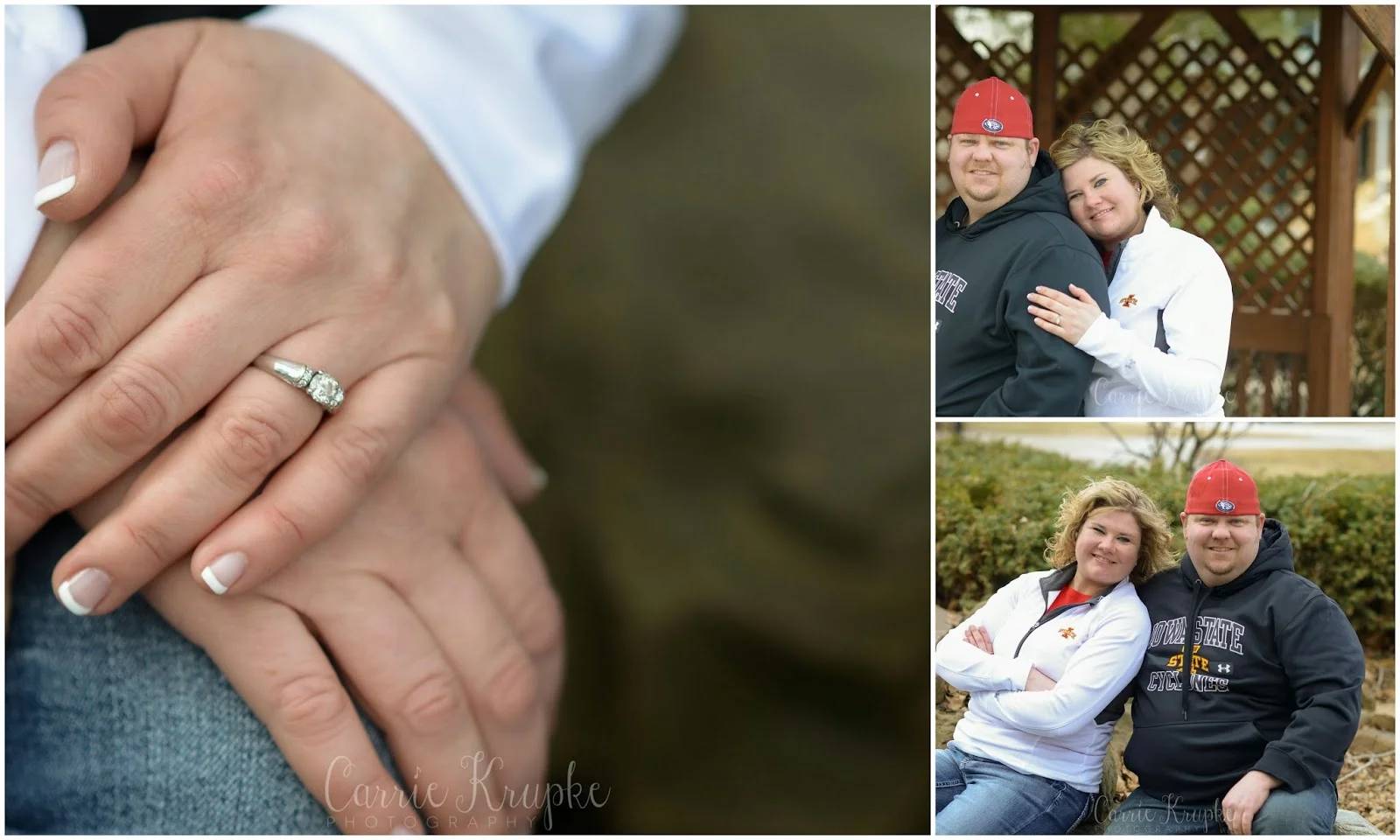 We had scheduled their engagement session to be in the midst of March Madness, not having an inkling that ISU would make it into the tournament, much less into the Sweet 16. So, when their session fell 2 days prior to the big game of ISU vs. UConn, we had to have a couple hints at their beloved team. I had gotten a few smiles out of Jb throughout our time together, but put the man in a sweatshirt and backwards facing ball cap and he’s all grins from there!