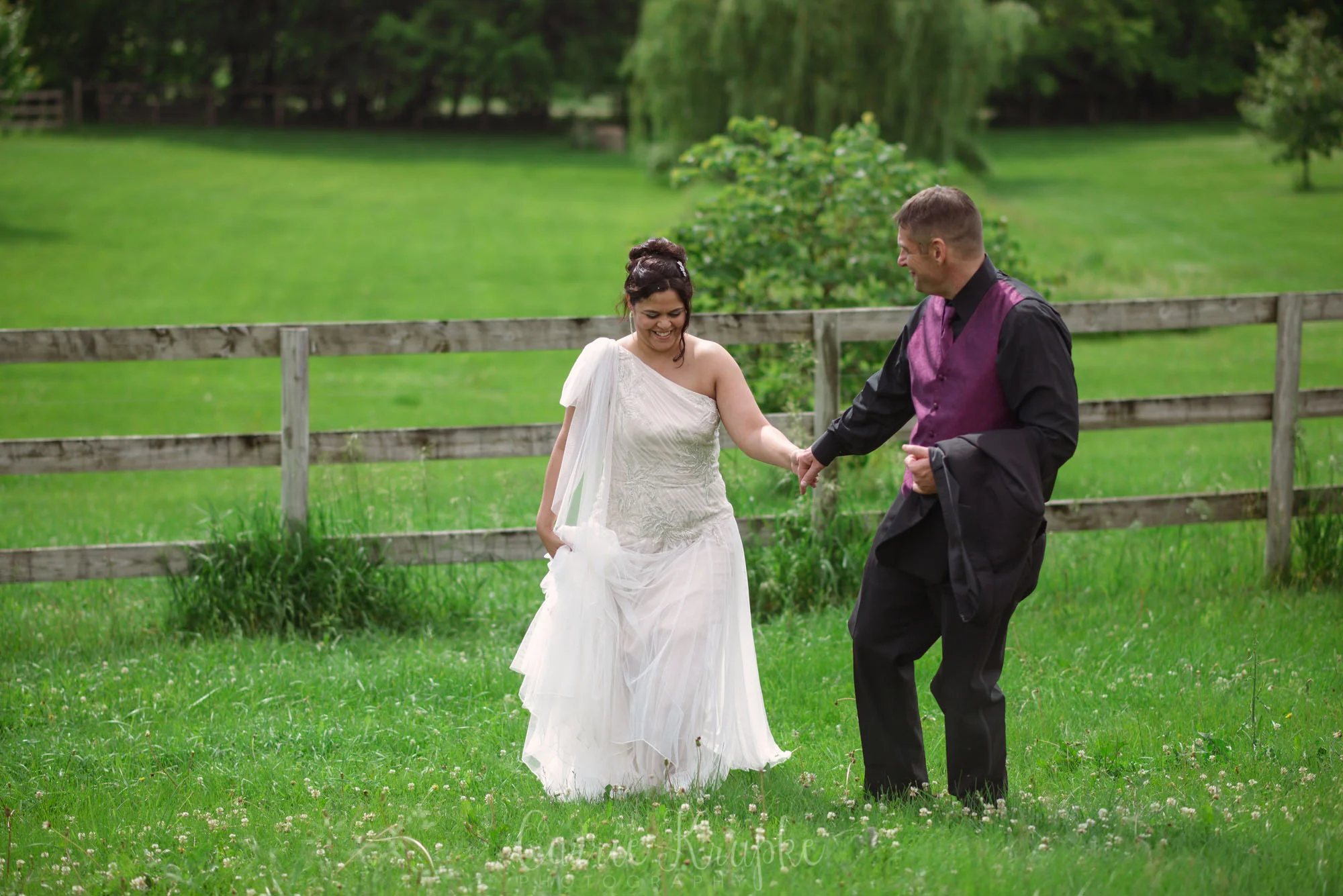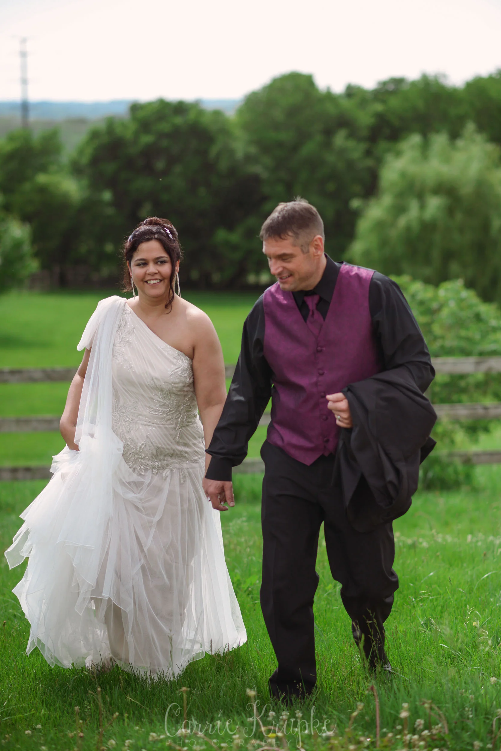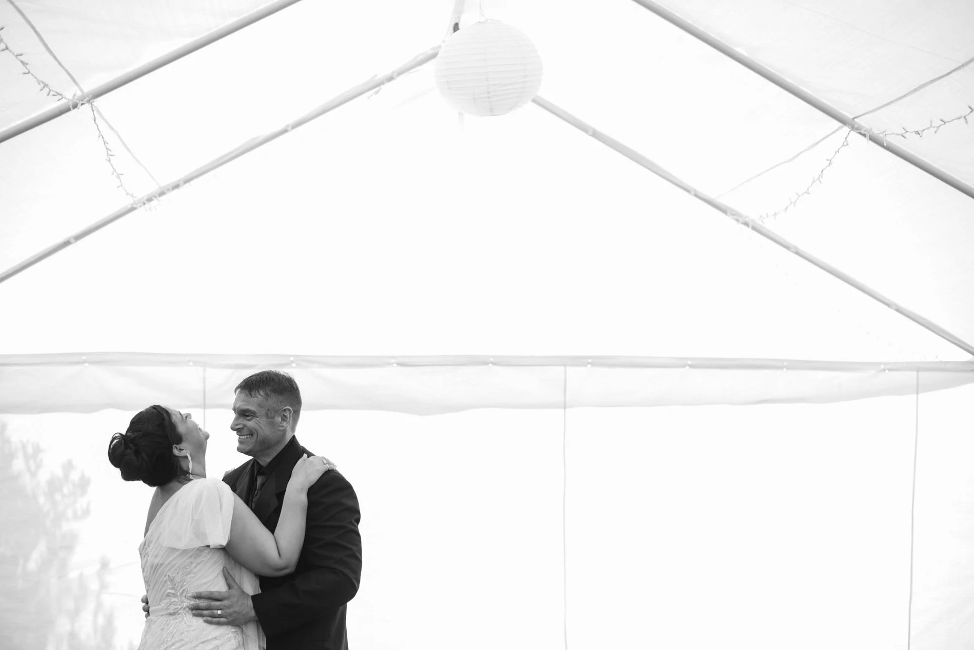 From the church, the party moved to Andrea’s parents’ home for a tented dance floor and eating space that was the perfect reflection of down-home Iowa country gatherings. Before their grand entrance, we took some more time for bride and groom portraits since the downpouring rain had finally abated!
