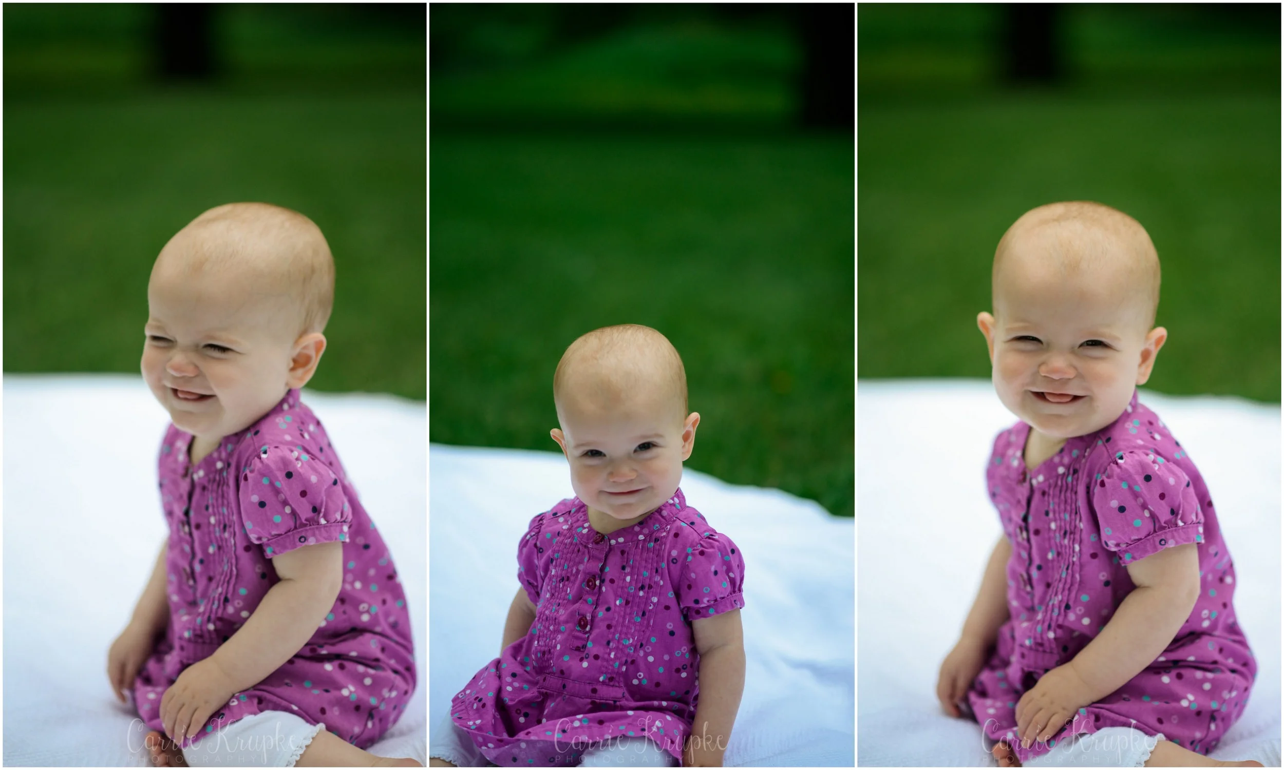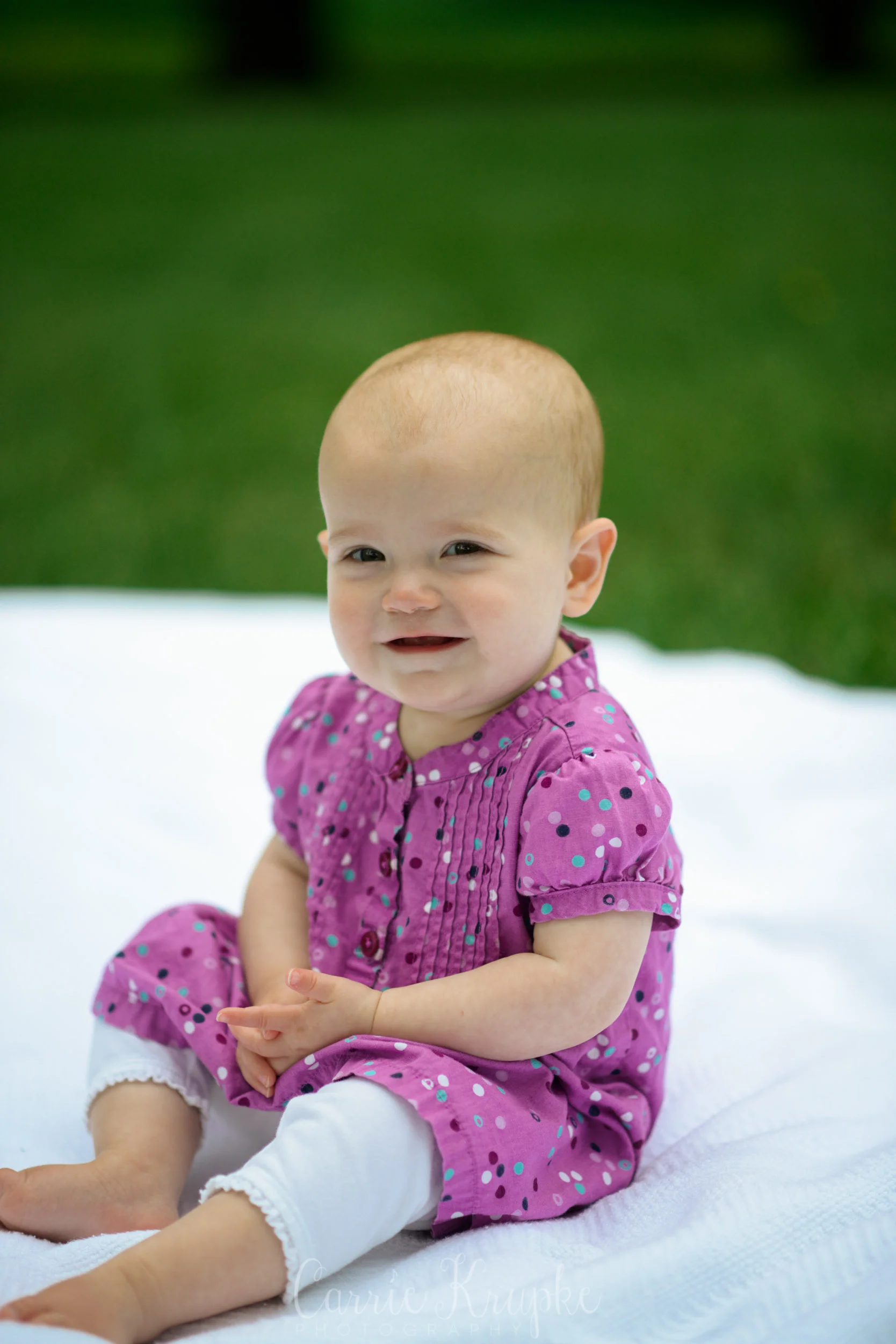 What a difference a year makes! Unable to document her newborn photos because I had a newborn of my own on my hands, Ellen’s mom, Jenni and I are having a ball comparing stories of what our girls are now doing. In between hilarious giggles, funny faces and the challenges of teething, Ellen was quite the happy camper at our morning session and the rain held off just long enough for us to get what we needed, marking her one-year milestone.
