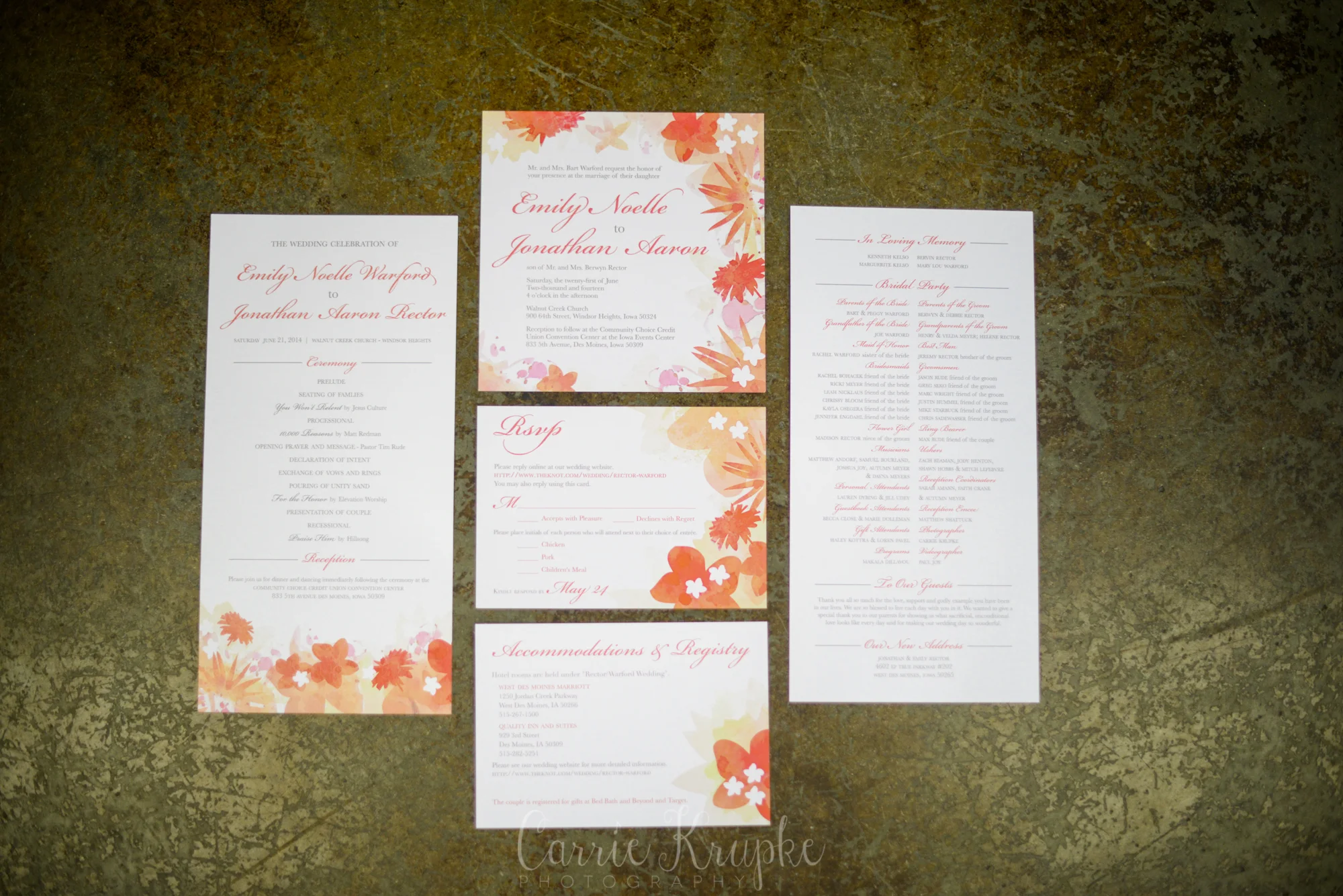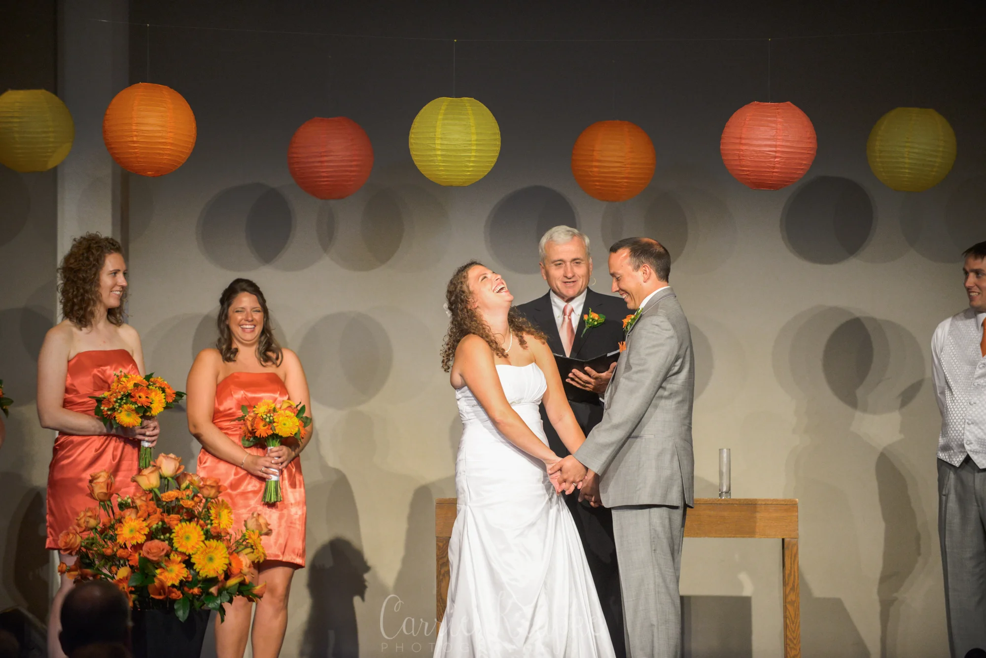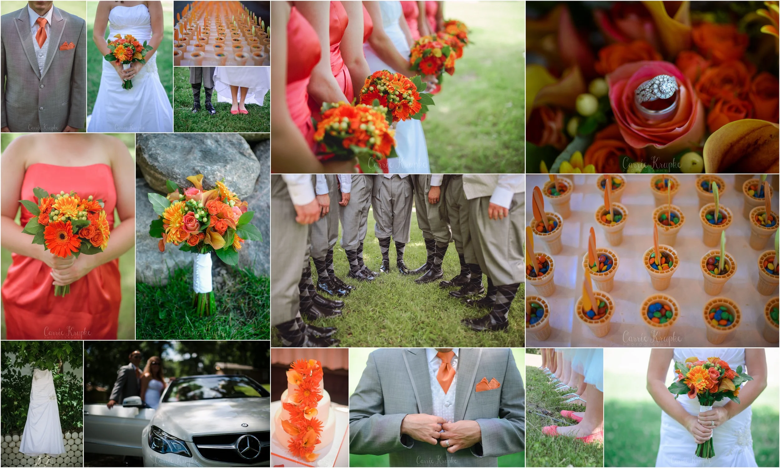 Emily & Jonathan’s day was so much fun and ALIVE. The summer colors that Emily picked were so gorgeous together and exuberant, I had to put them all together in a collage so you could see what I’m talking about. (PS The back story behind their name cards being ice cream cones? Emily’s dad owns several Dairy Queens in the area, so they actually served DQ blizzards alongside wedding cake at the reception!!)