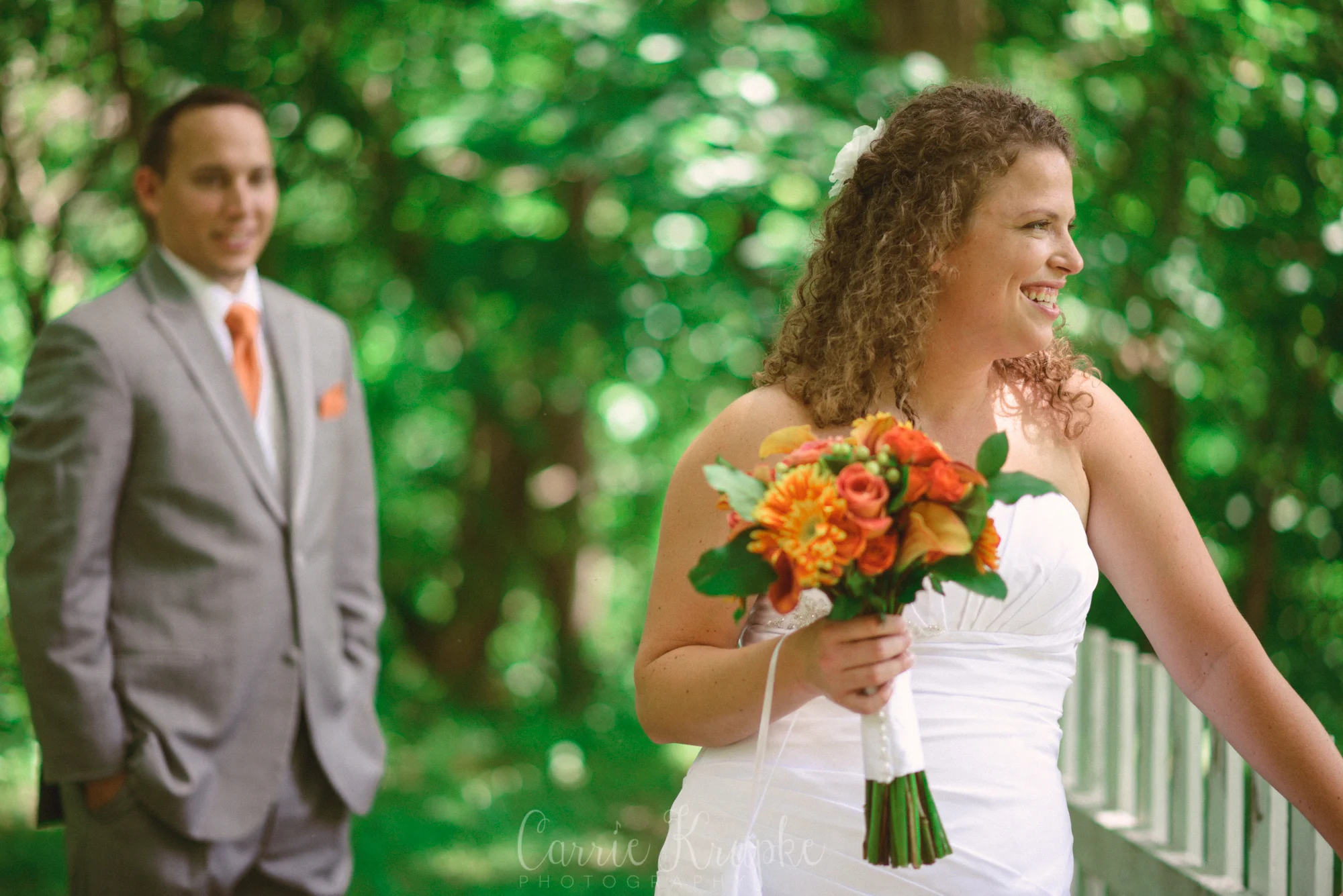 While I was with Emily, my trusted second for the day, Austin, was with Jonathan, scoping out a First Look location and catching some laid back groom portraits. When it came time for the First Look, you can see Austin’s perspective on the left and mine on the right.