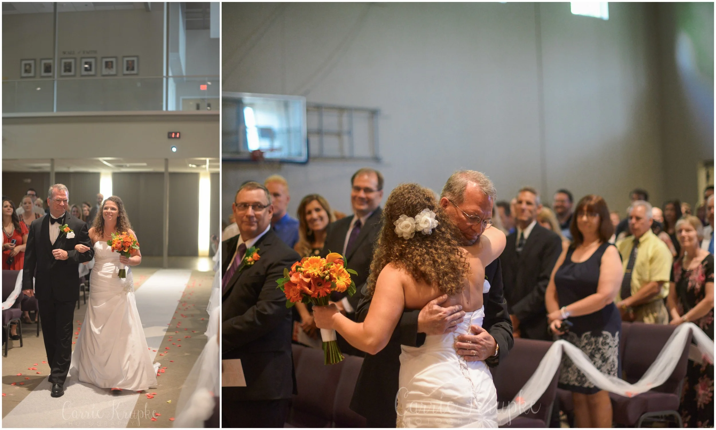 Another benefit is that you can cover the same moments from different perspectives too. While the head photographer is generally at the front of the aisle, the second is generally in the back of the church catching candids between the bridal party and between the bride & the person giving her away. I absolutely love these that Austin caught-Emily’s flower girl and ring bearer took their jobs very seriously and raced down the aisle in record time! And while some may say these Little Ones can steal the show, Emily & her dad, Bart, had such a beautiful walk together before he gave her away. You could tell they took their time, whispered to each other and thoroughly enjoyed the moment.