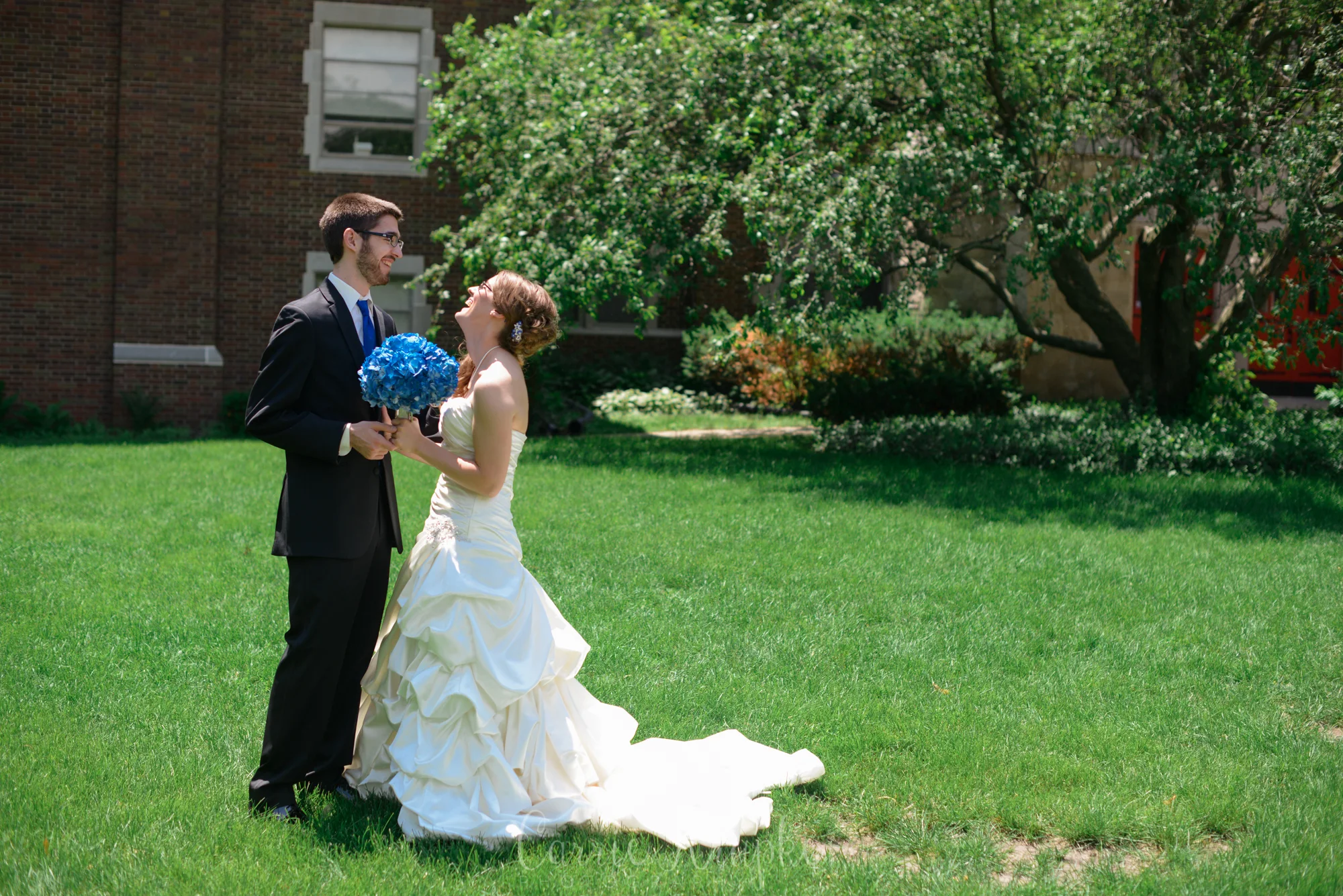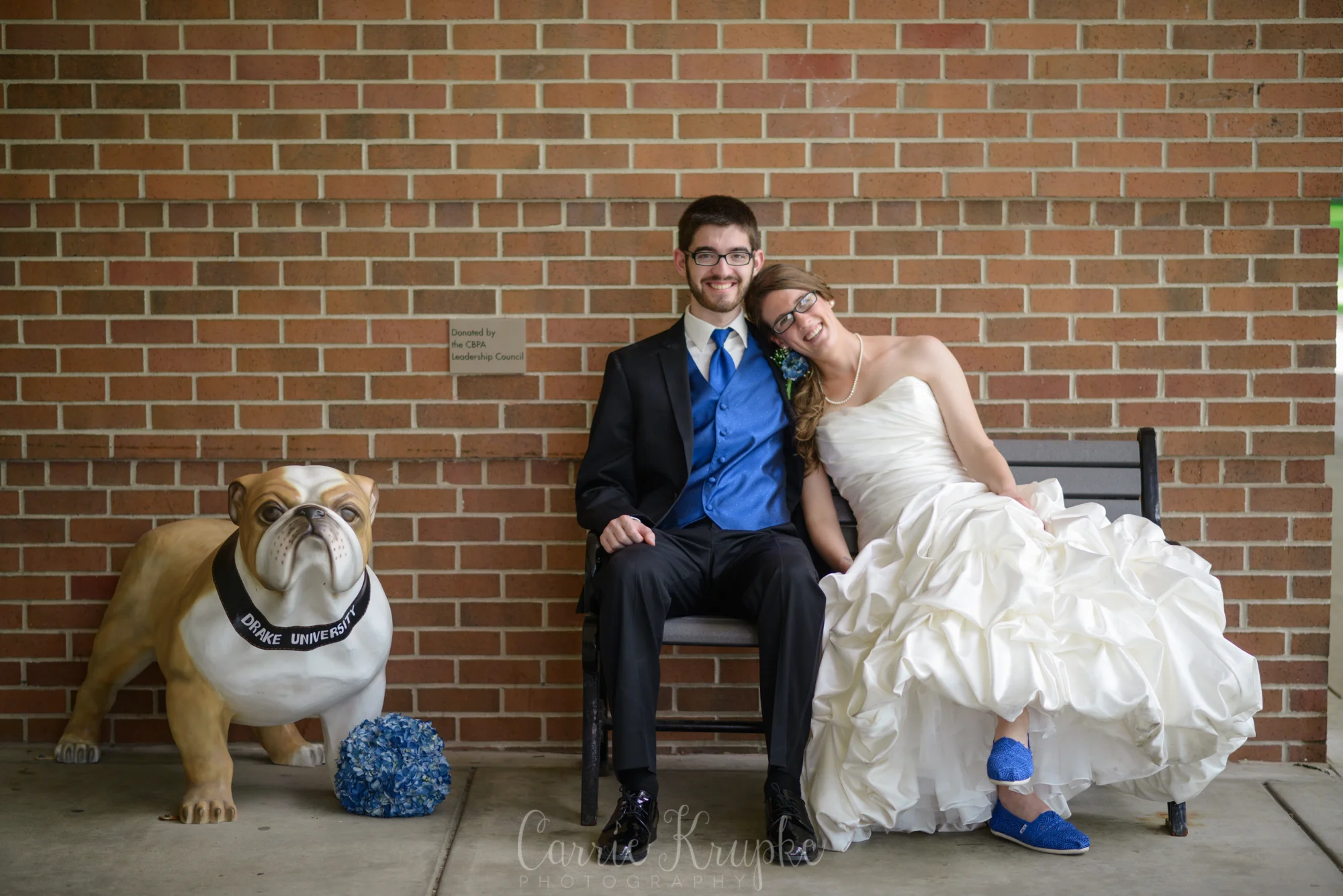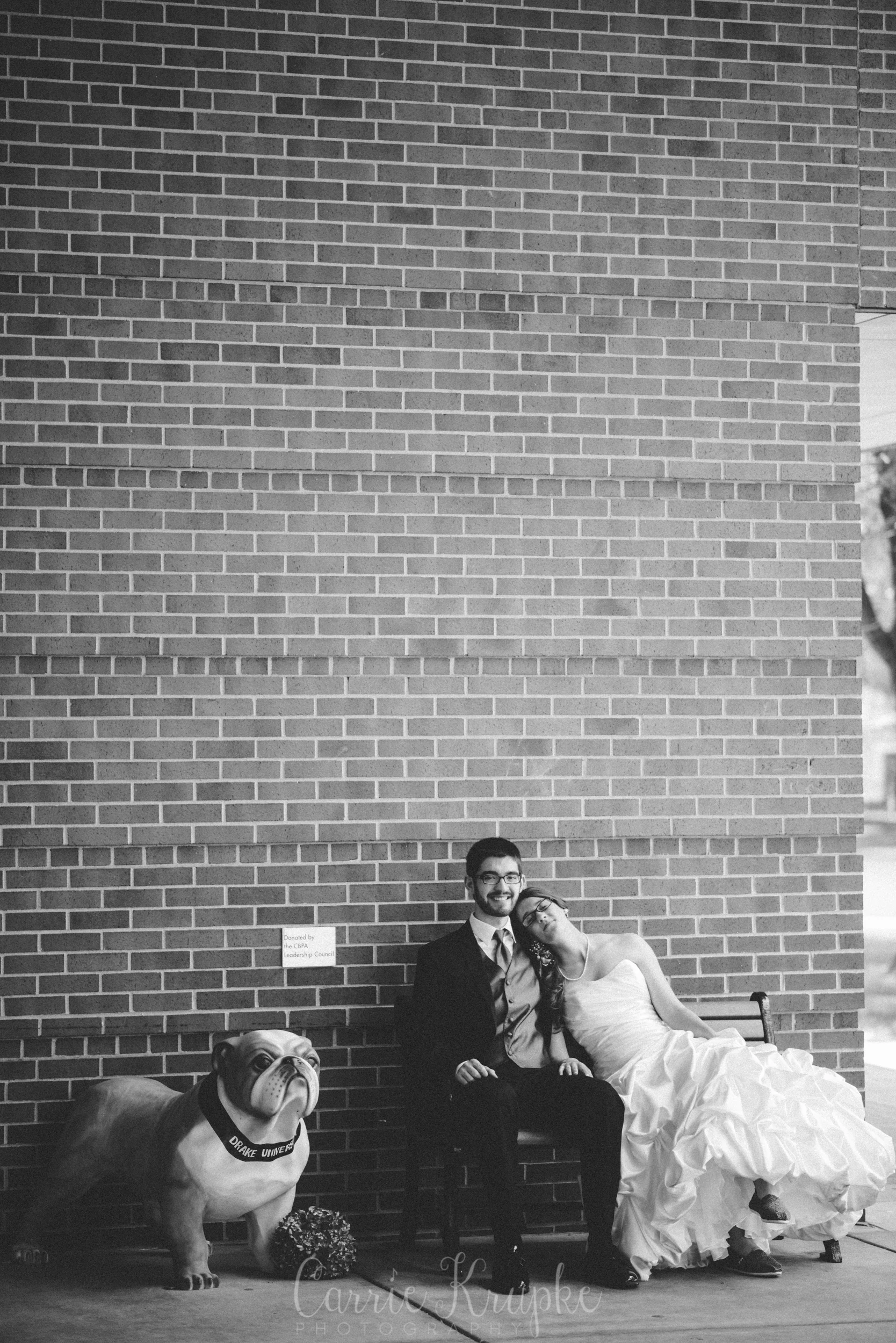 After the ceremony, we headed to their alma mater, home of Drake’s Bulldogs, and I love the images we captured outside Aliber Hall- the business building where they first met.