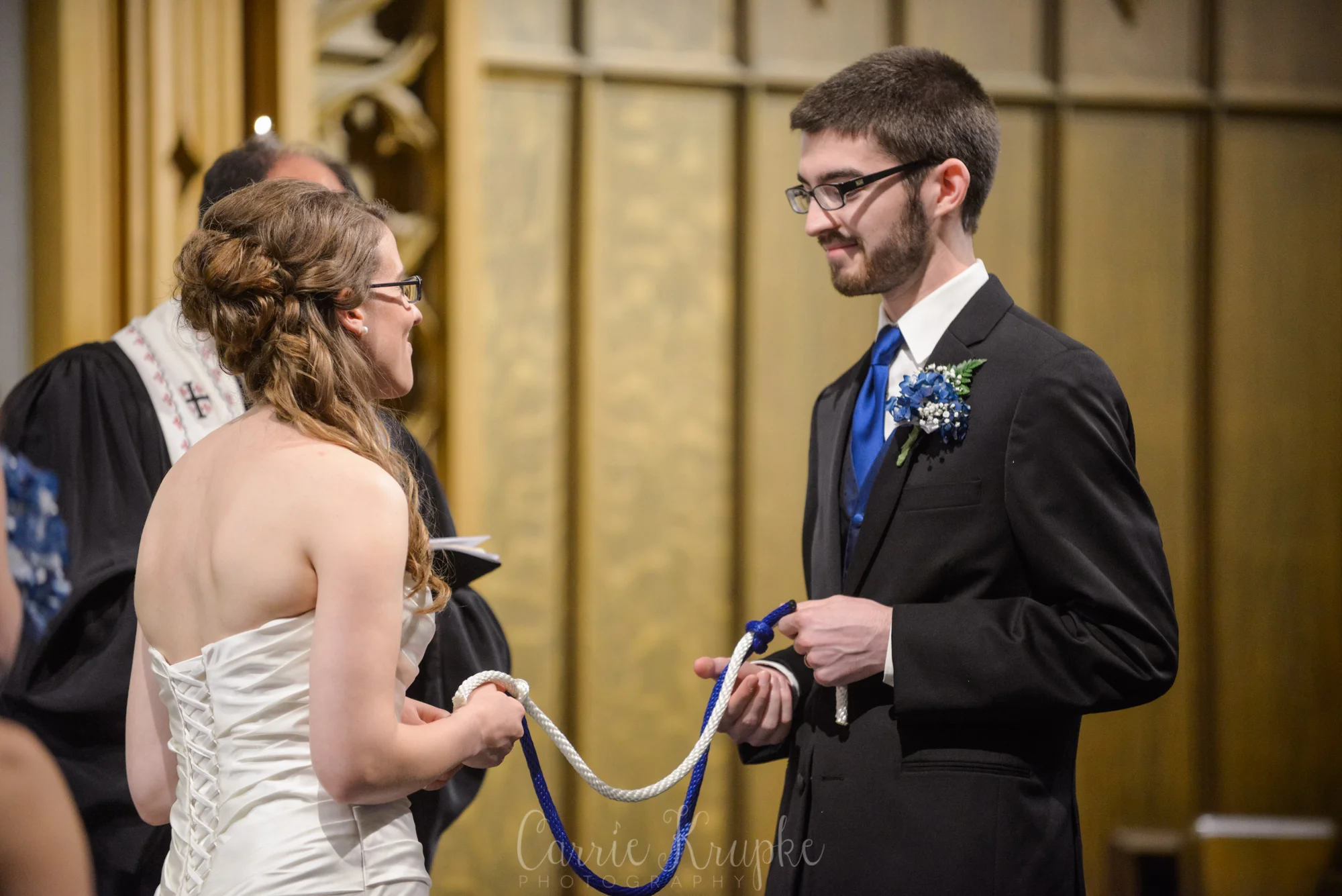 Sam & Elizabeth had a beautiful ceremony including a few things I’d never seen done before. They had each of their moms be their witnesses to sign the marriage certificate and instead of a Unity Candle, their moms handed the couple nautical rope to tie a Unity Knot. It was so special!