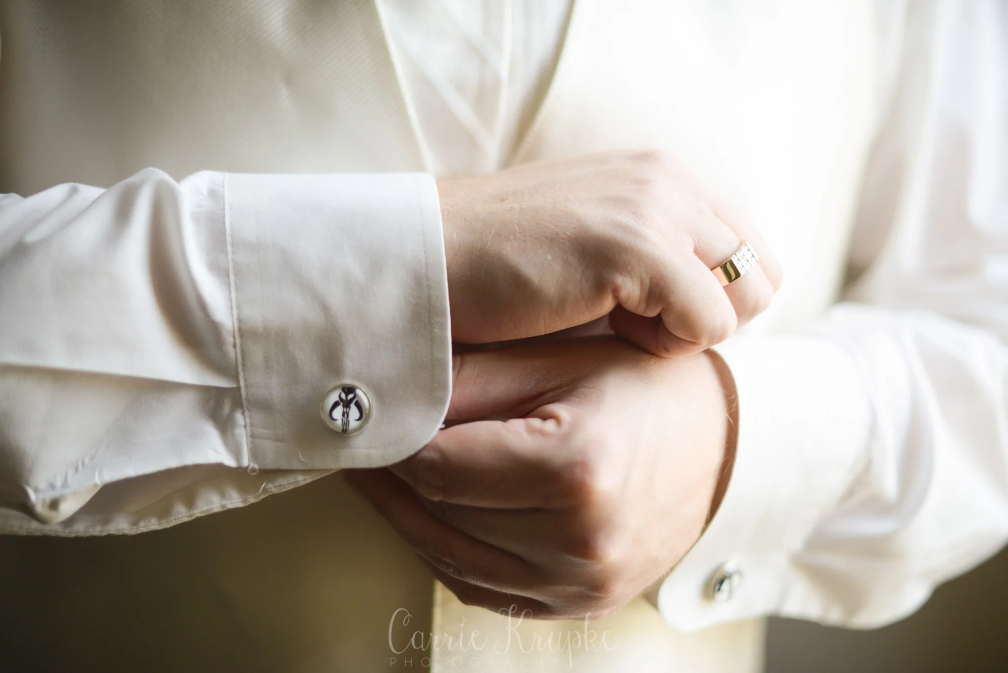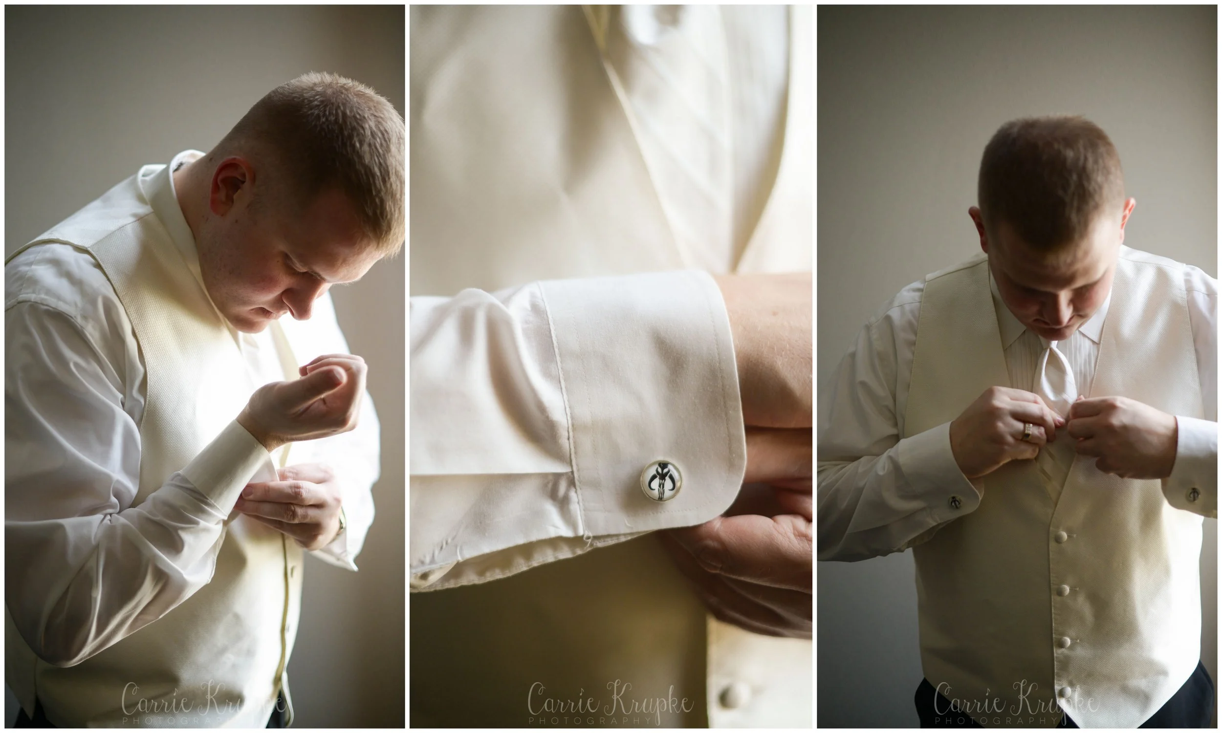 For all you Star Wars fans, the bride, Carrie, had gifted her groom and his men with Star Wars characters on their cufflinks. I had to get a close up. 🙂