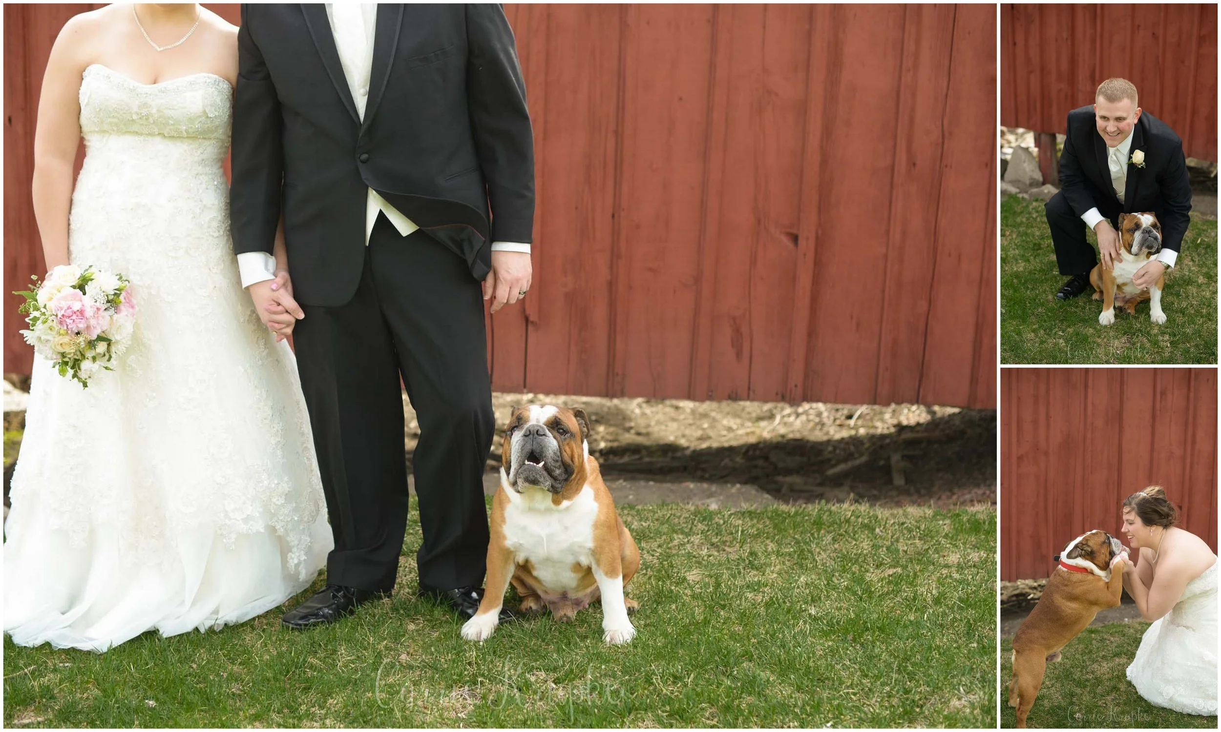 While their guests moved from the ceremony site to the reception, we snagged a few photos at a nearby park to include their bulldog who was so attentive and excited to be a part of the show!