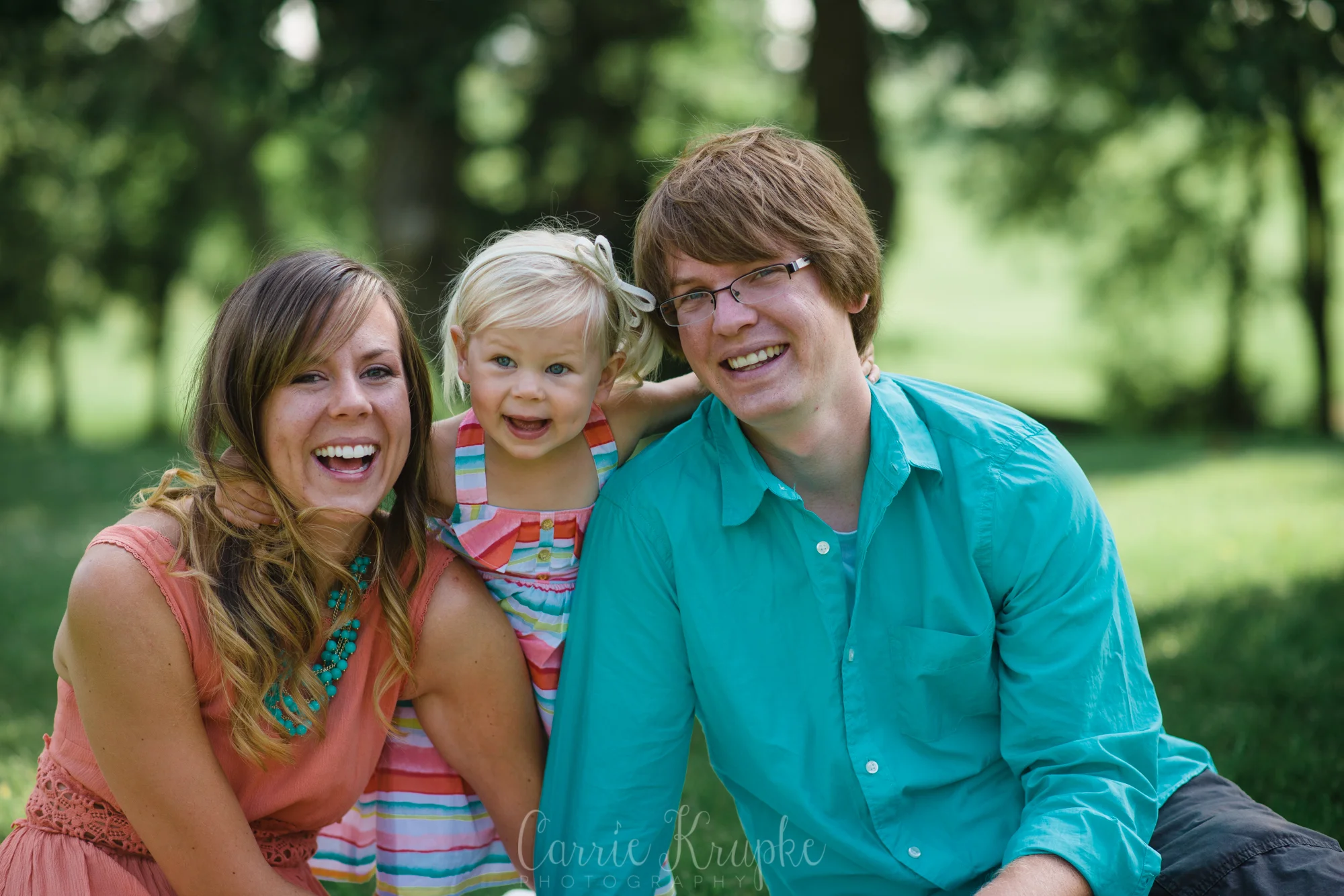 Somehow, an art major and a pharmacy student met at Drake, decided they liked each other and wanted to spend the rest of their lives together. On June 7, 2008, (06.07.08) they made that happen. I’m sure Jeffrey could tell you the DNA factors behind how this all comes about and whether or not dimples are a recessive or dominant gene. I’m sure glad they made into Ms. Sadie’s gene pool and onto her sweet cheeks….Her Mama, Ashley is the friend I mentioned earlier who is Mrs. Crafty-Extraordinaire. Here’s her adorable family, complete with Dimples present and accounted for: