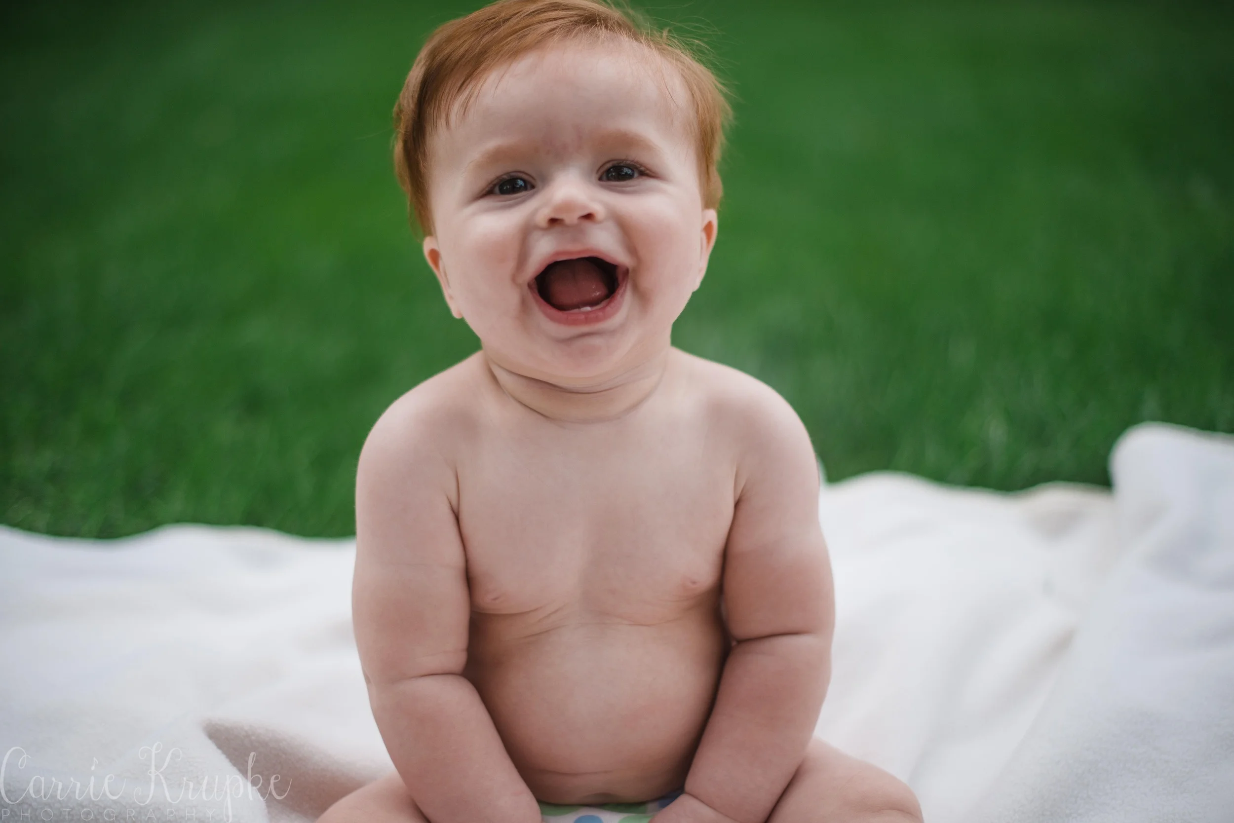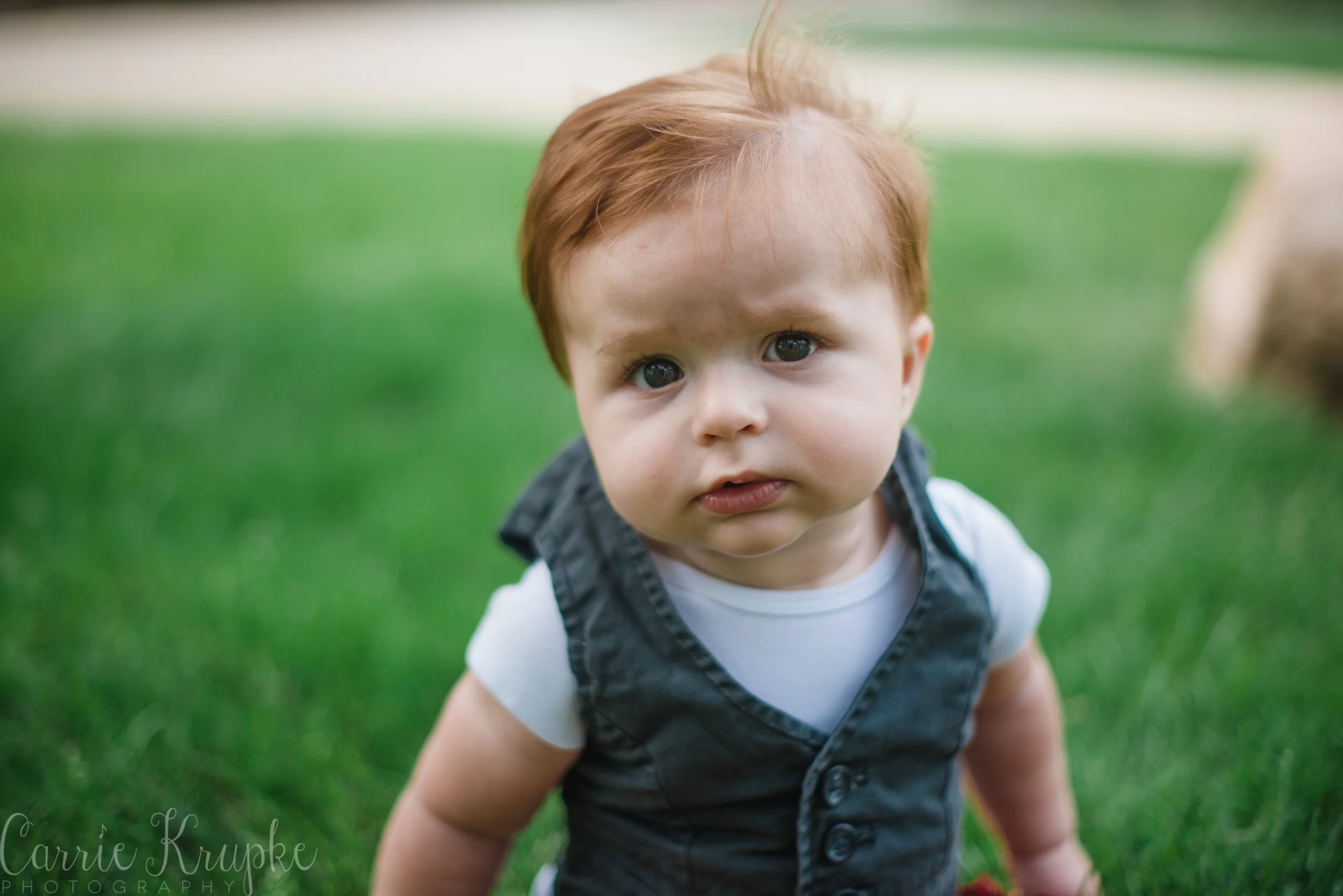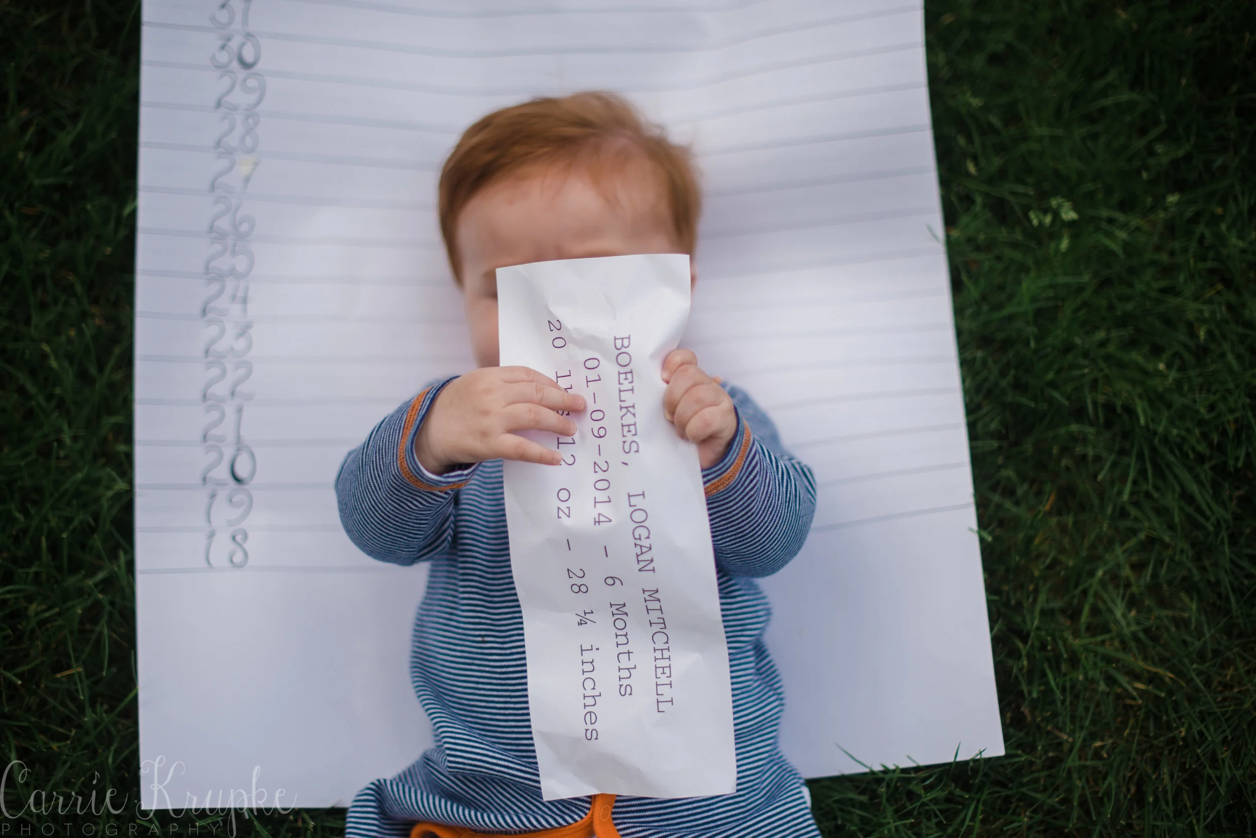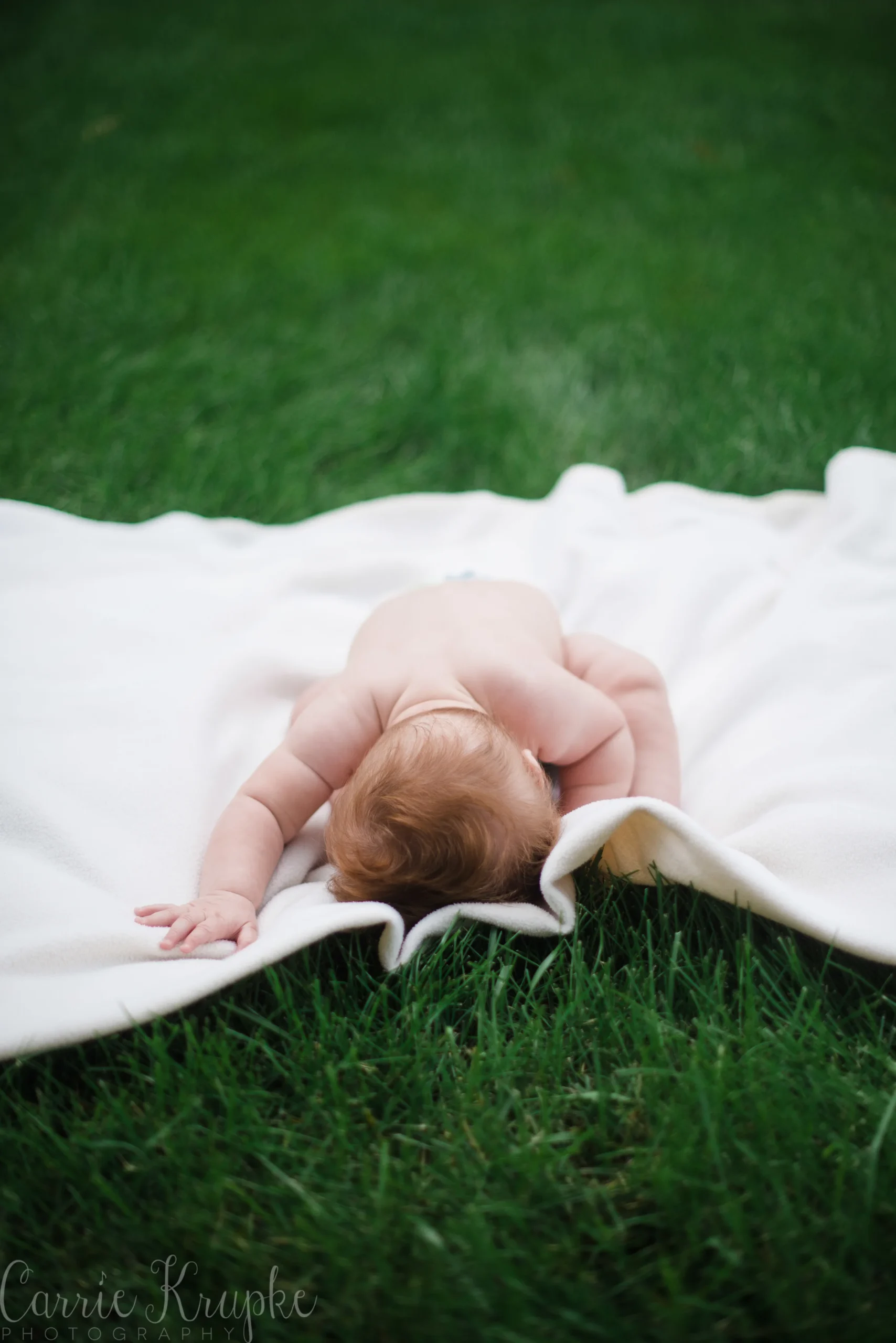 After the obligatory mug shot to show off Logan’s height, we did some “naked baby” photos before it got too chilly outside. I included the photo after the mugshot of Logan face-down because, sometimes, being a baby is hard!! 🙂