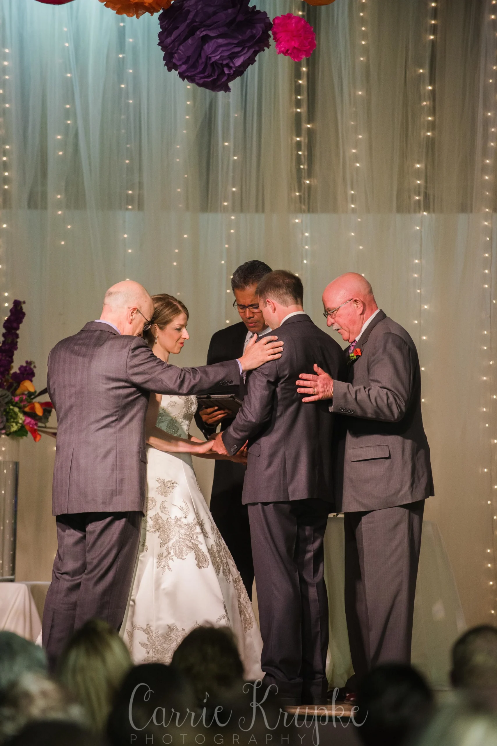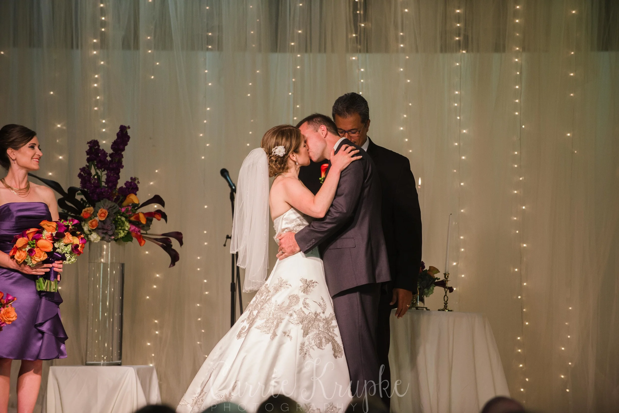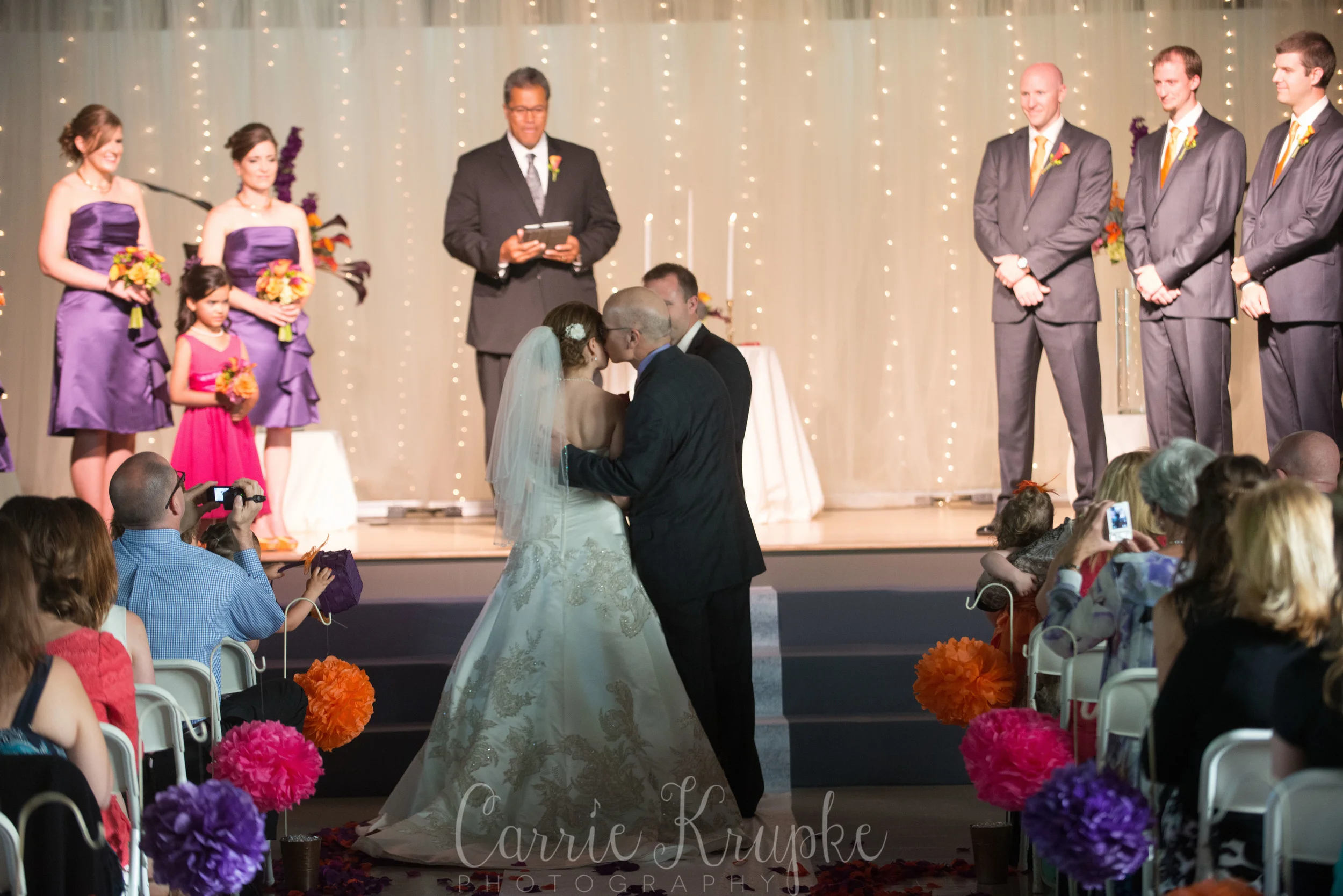As second shooter, I typically hang in the back to get some candids between the bride and her dad before they walk down, shots of her dress in full from the back (which, Hillary’s dress had details on the back that I’ve never seen before-such elegance!) and a more pulled back shot of her father giving her to Nathan. They also had their fathers approach the stage and pray over them/with them to conclude their ceremony… Such touching moments, I’m honored they asked me to help document for them…