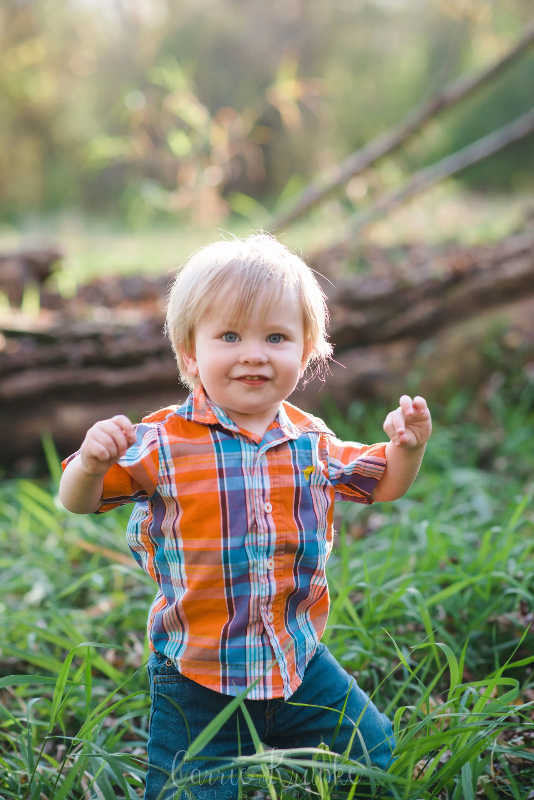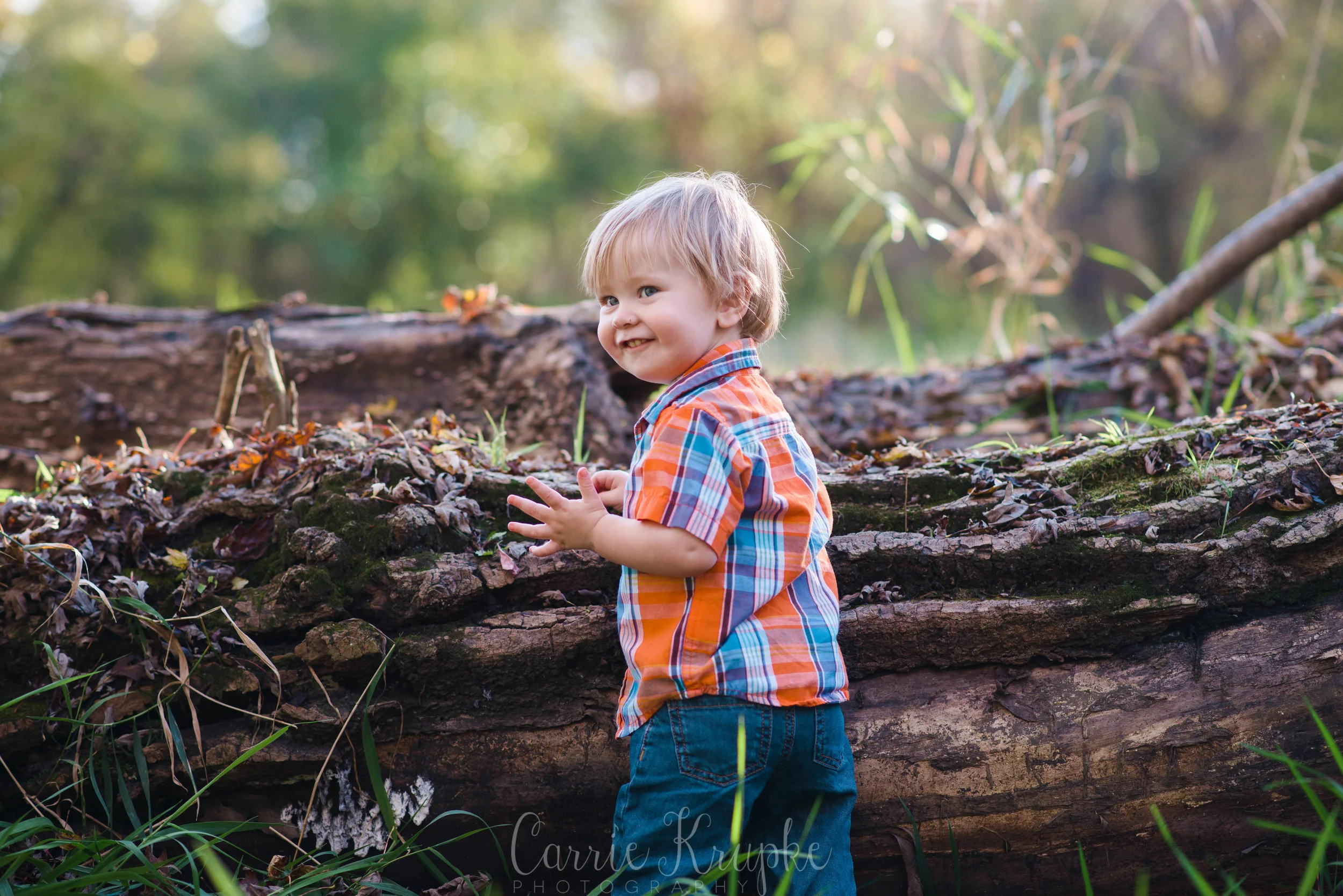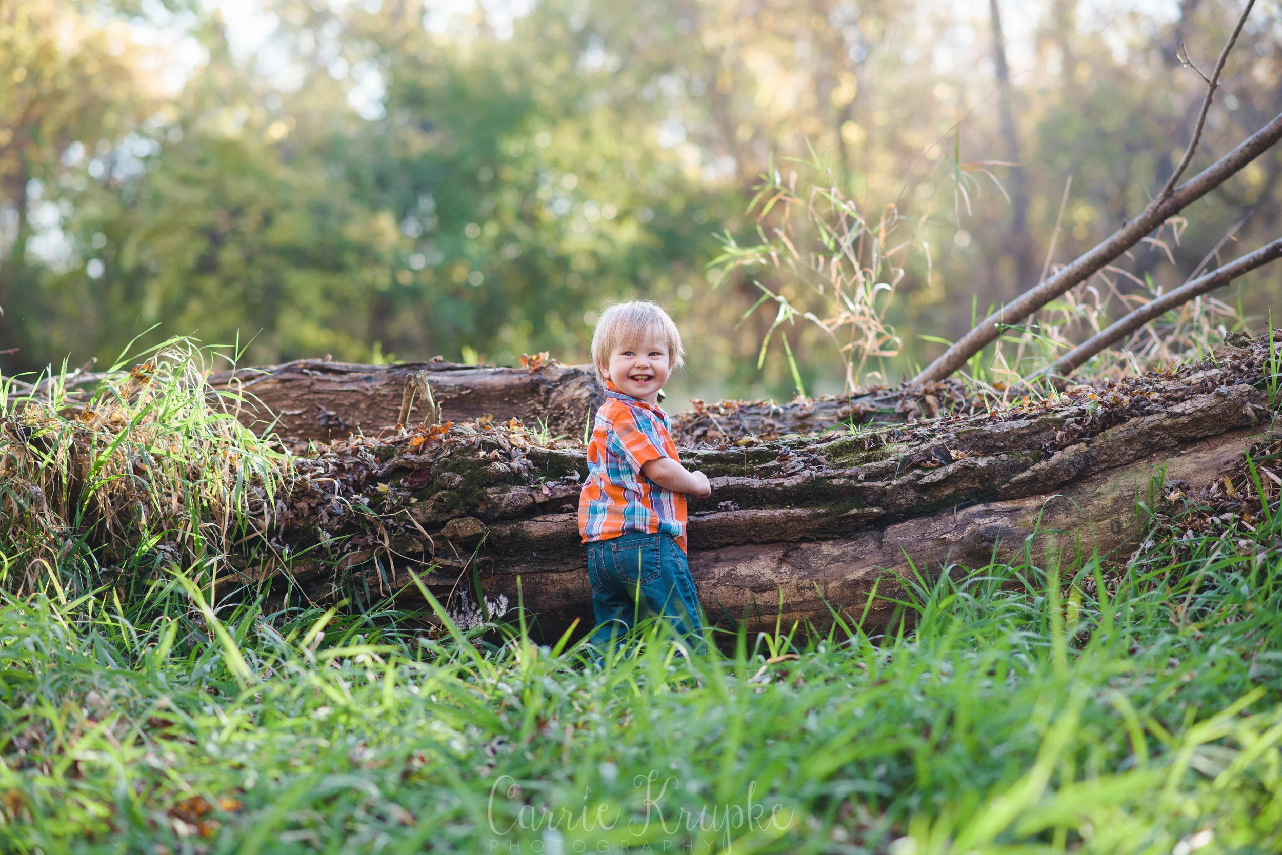 After getting plenty of family photos to choose from, we let Isaac explore the grassy area and the fallen trees…