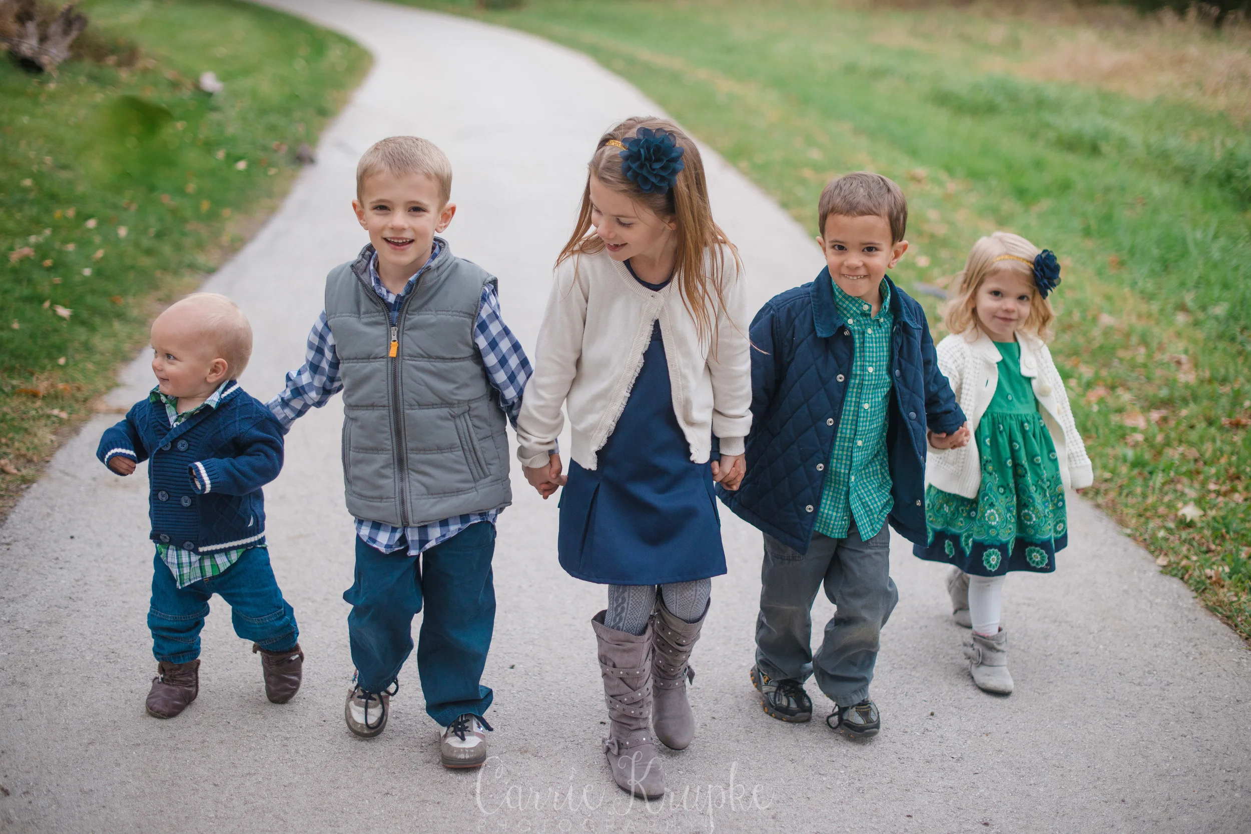 Rachel & Jason were a part of our lives many years ago through Bible study when Clara, their oldest was a newborn. Fast forward 7 years and 4 more children, and you have the current Cunningham household. Well, 5 more children if you count the one on the way, set to arrive in a few months. This awesome family might have hit an all time record with Carrie Krupke Photography: a family of 7 done in under 30 minutes. Blame it on the chilly weather and amazingly behaved children! There’s nothing that the promise of an ice cream treat can’t help. 😉