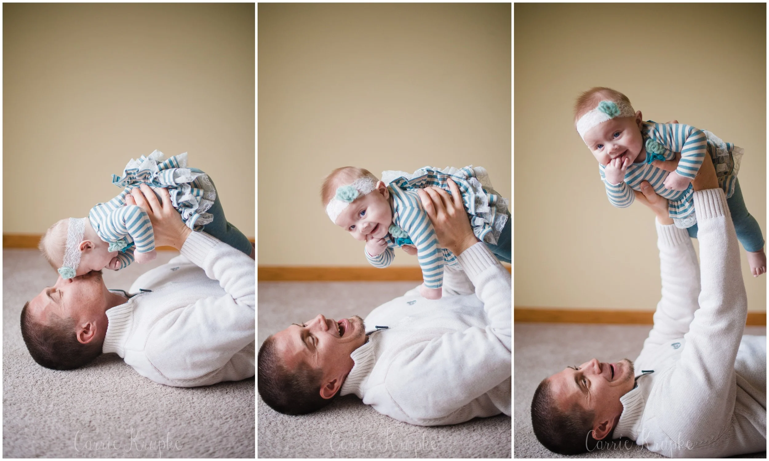 Jen mentioned that she felt like Ava’s 3 month session was more of a Mommy n’ Me session, so she wanted to have a few more photos of just Ava & Jason this time around. So, Jason’s back got a workout doing some baby lifts (below):