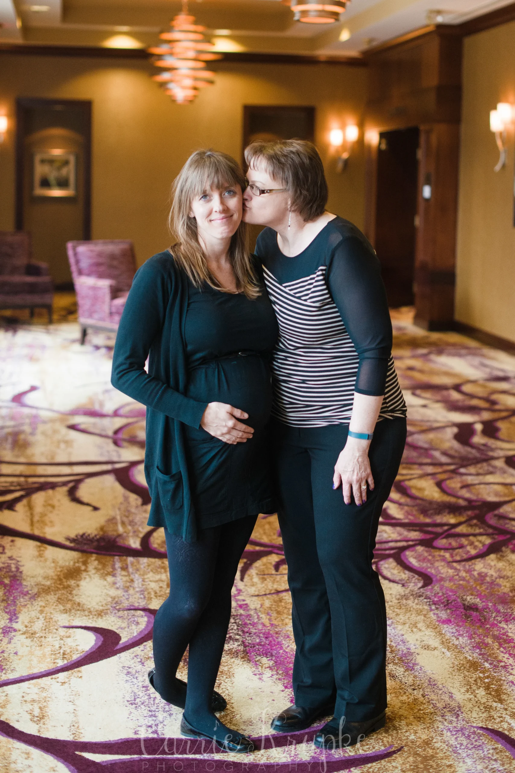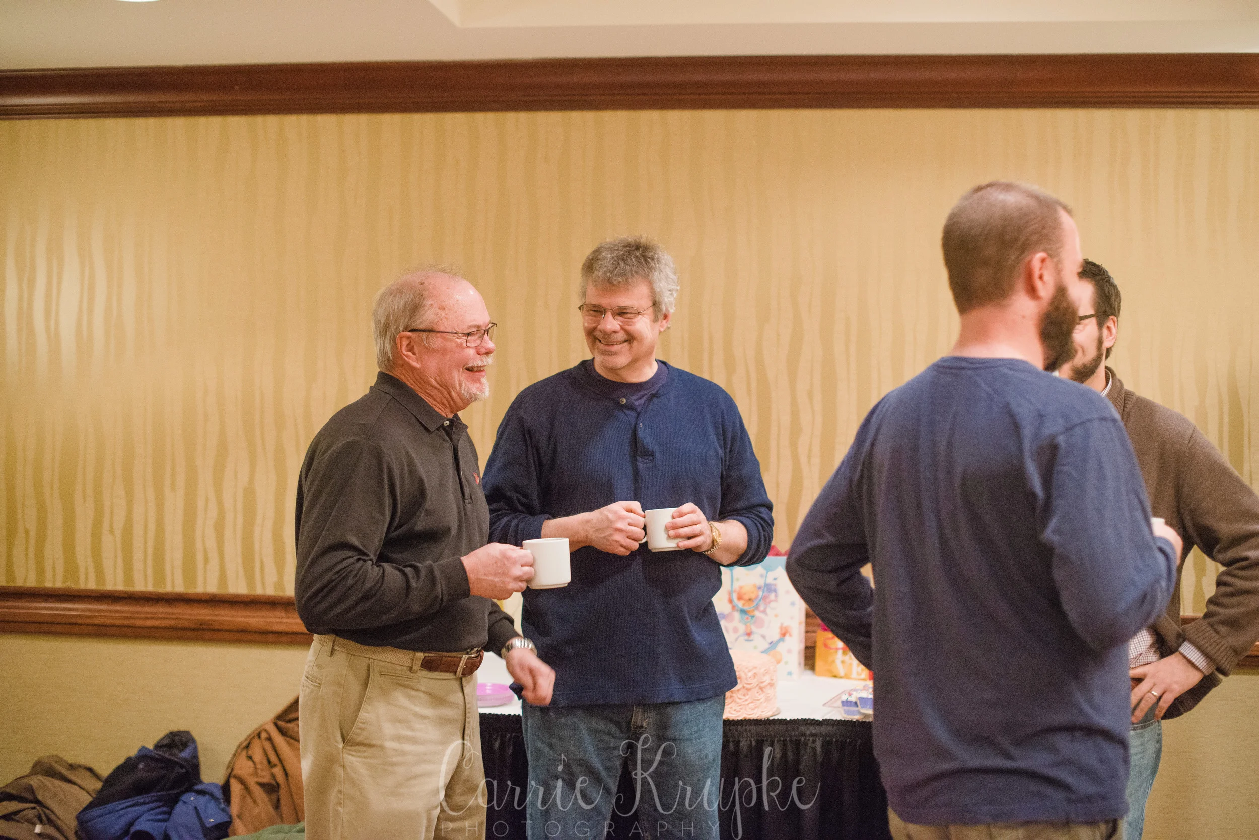 The men gathered with mugs of coffee in hand, the ladies oogled over the growing babies (in and ex utero) and eventually, they all came together in a semi-circle facing the door where Aunt Barb would enter.