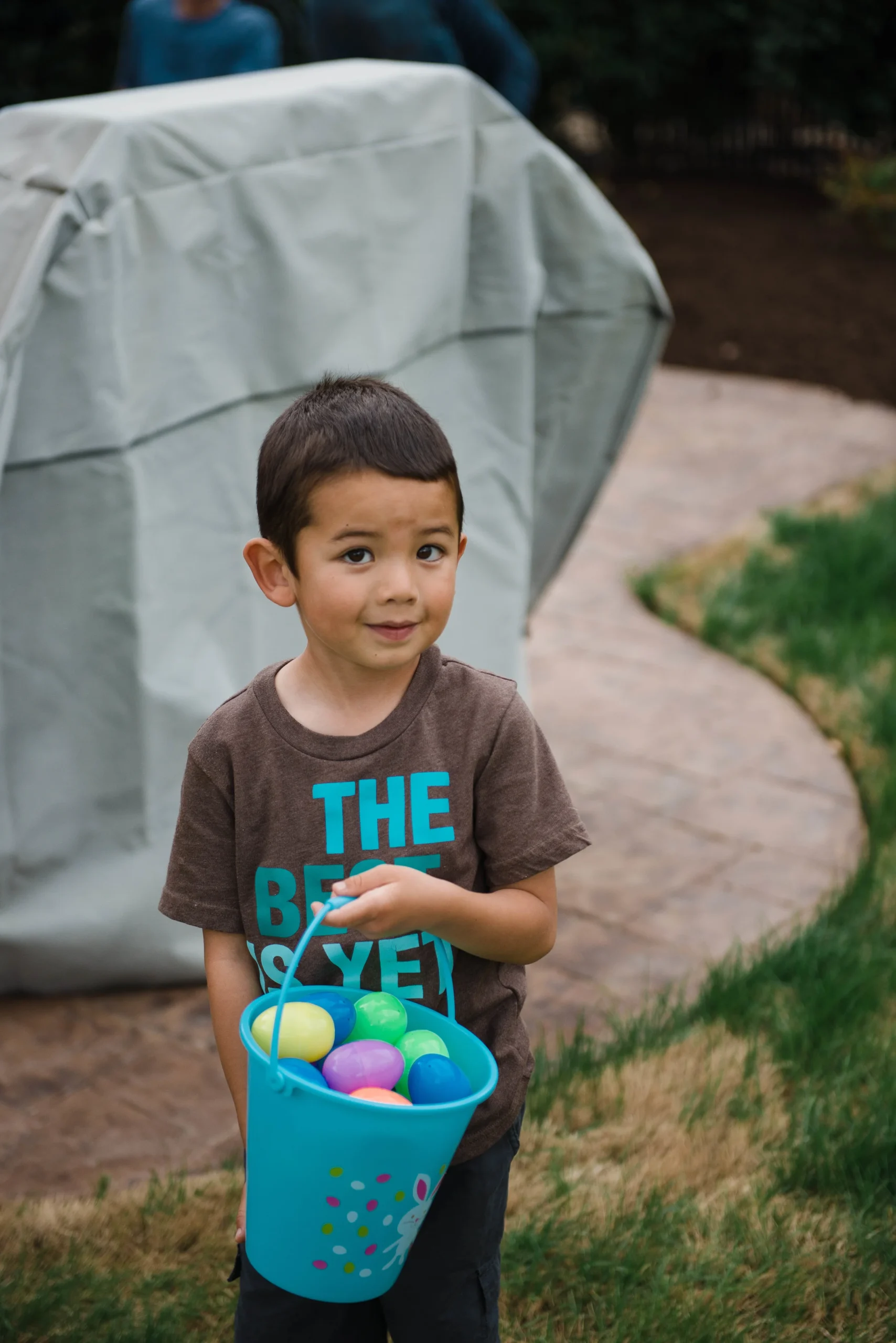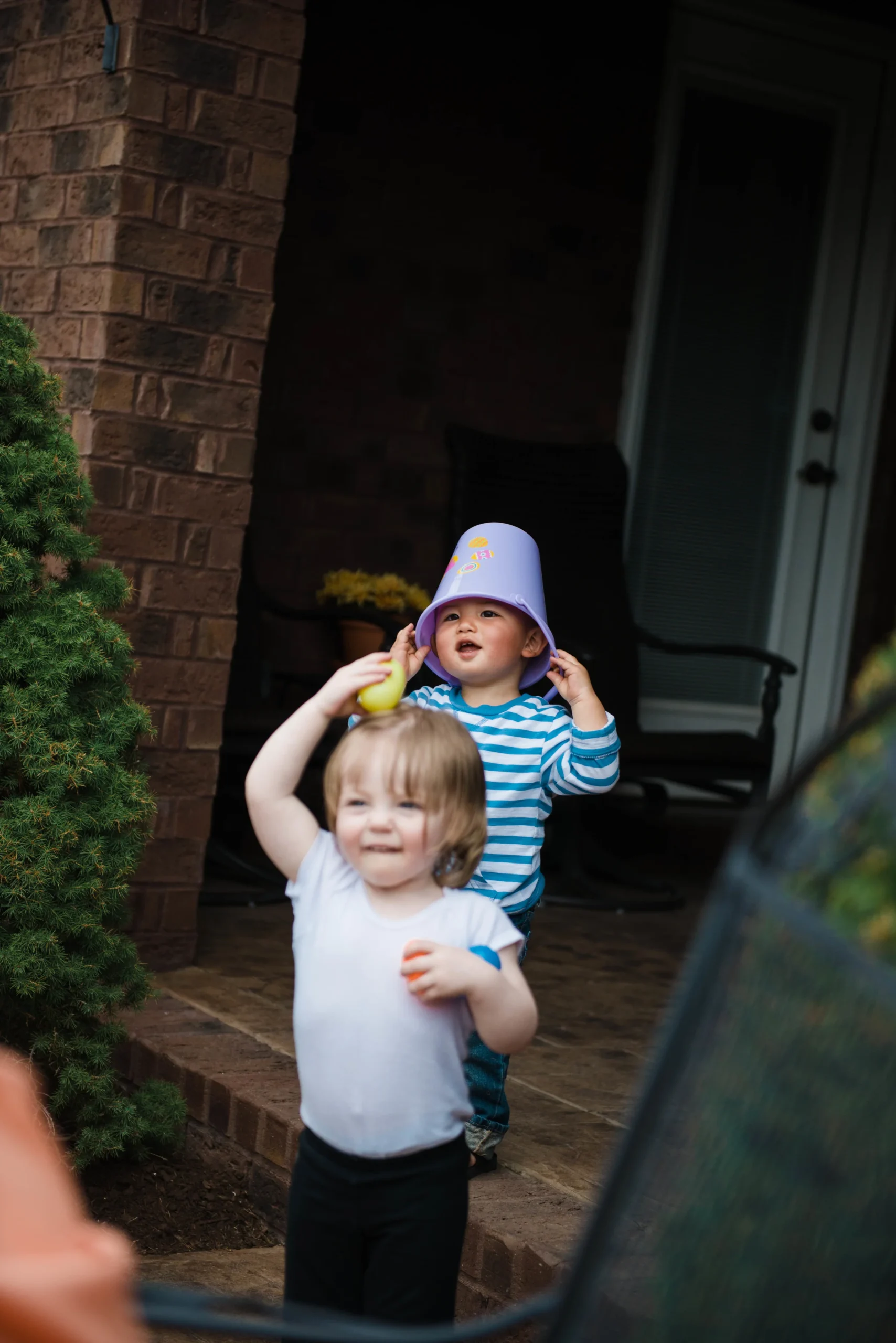 The eggs were not only hidden, found and played with, they were props, entertainment and then hidden/found again and again. It filled our afternoon until a storm started to blow through and it was nap time.  We checked into the hotel and it was lights out until dinner time…