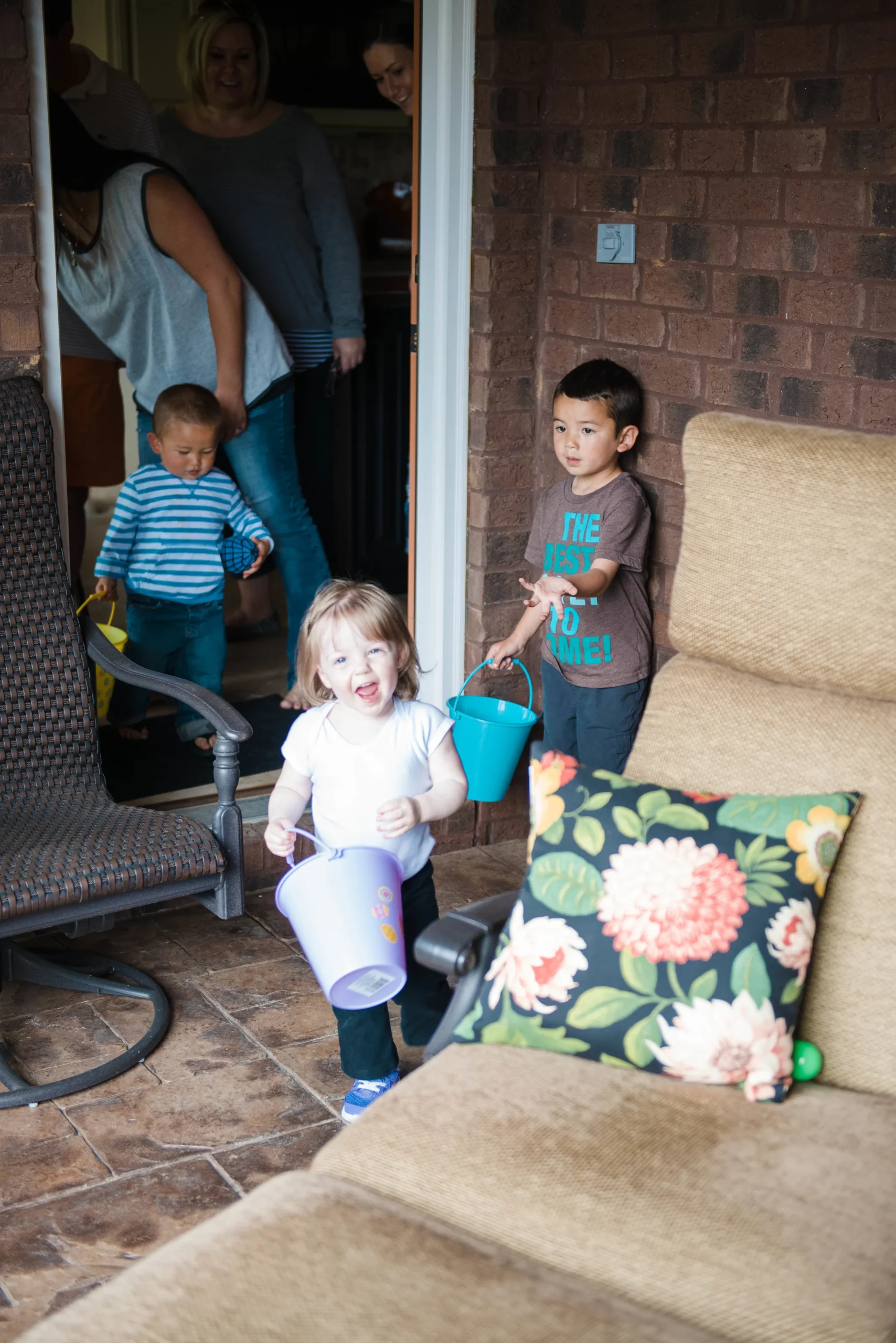 Our flight arrived on time Good Friday morning and we met everyone at Jason’s Deli for lunch. (I feel like the apostle Mark saying this, but) Immediately afterward, we headed to Gerard’s Aunt and Uncle’s house for an Easter egg hunt for the Babies. Laidy has two boy cousins, ages 4 and almost 2 so it was perfectly fitting for them to track down those eggs! Especially, when she looks this excited about it: