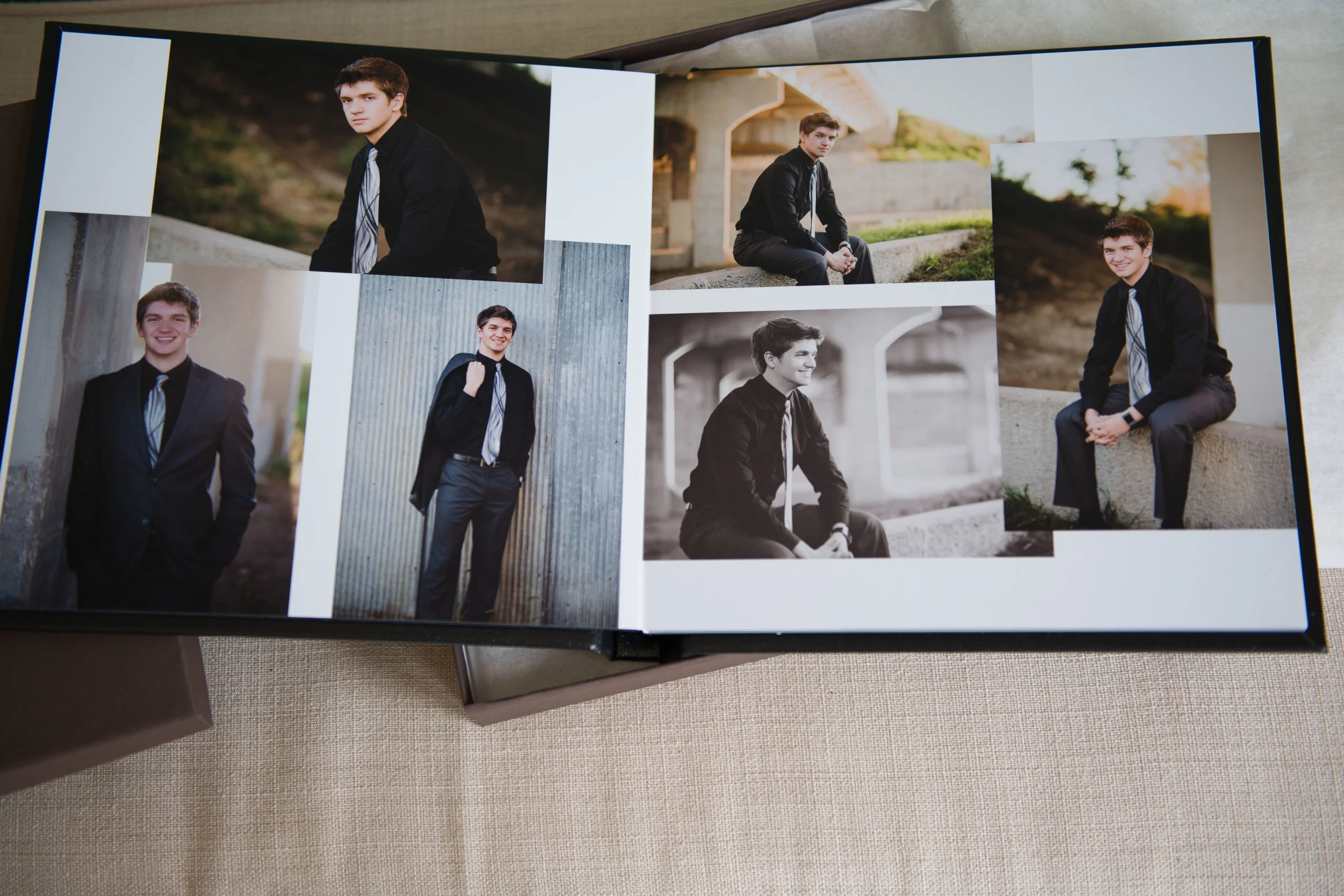 I first referenced this experience HERE, and am beyond thrilled to show the final product for Sebastian’s Senior Session Experience. From that initial meeting with him and his mom where we selected their favorite images, I designed their album requests and then got together with them a second time, to ensure it looked the way they wanted. I absolutely LOVED guiding them through the process, acting as a trusted advisor, and after the albums were completed, we also designed his invitations to his Open House, his Thank You cards and address labels. Krista, Steve, and Sebastian were hilarious to work with and have certainly set the bar for how I intend to work with future clients. They were patient with me while I learned the ropes of this album designing thing and I couldn’t be more pleased to offer them a well-rounded experience.