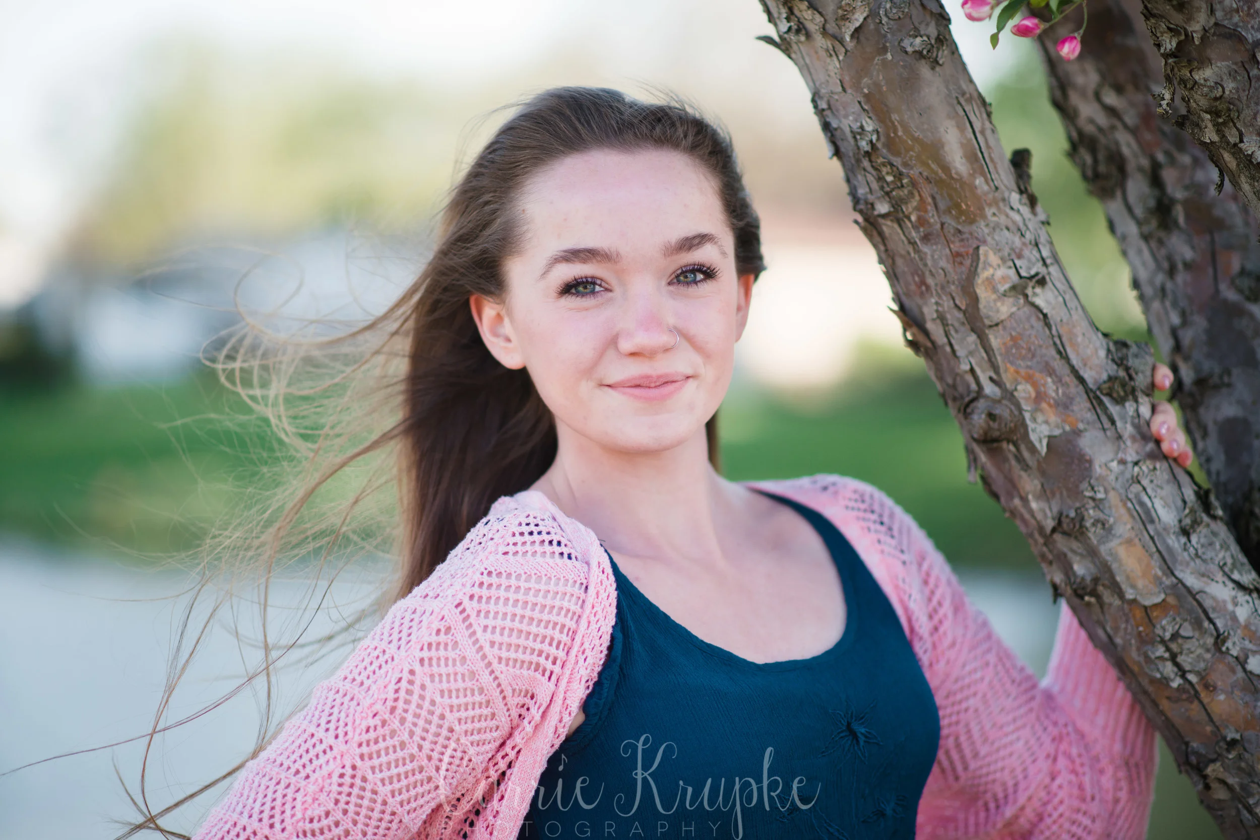 Now, seemingly, in the blink of an eye, Alli is facing her senior year in the fall and we are doing something a smidge different with her senior session(s). Alli requested some photos be taken in each season of the year-and since Iowa does four seasons so well, I was happy to oblige. That also meant we went from “talking about her session” to actually “shooting her session” in a matter of four days to catch the trees in bloom before another spring storm blew them all to smithereens. But again, Alli’s not deterred-not even by the sometimes gale-force winds we encountered during her first of four mini-sessions.