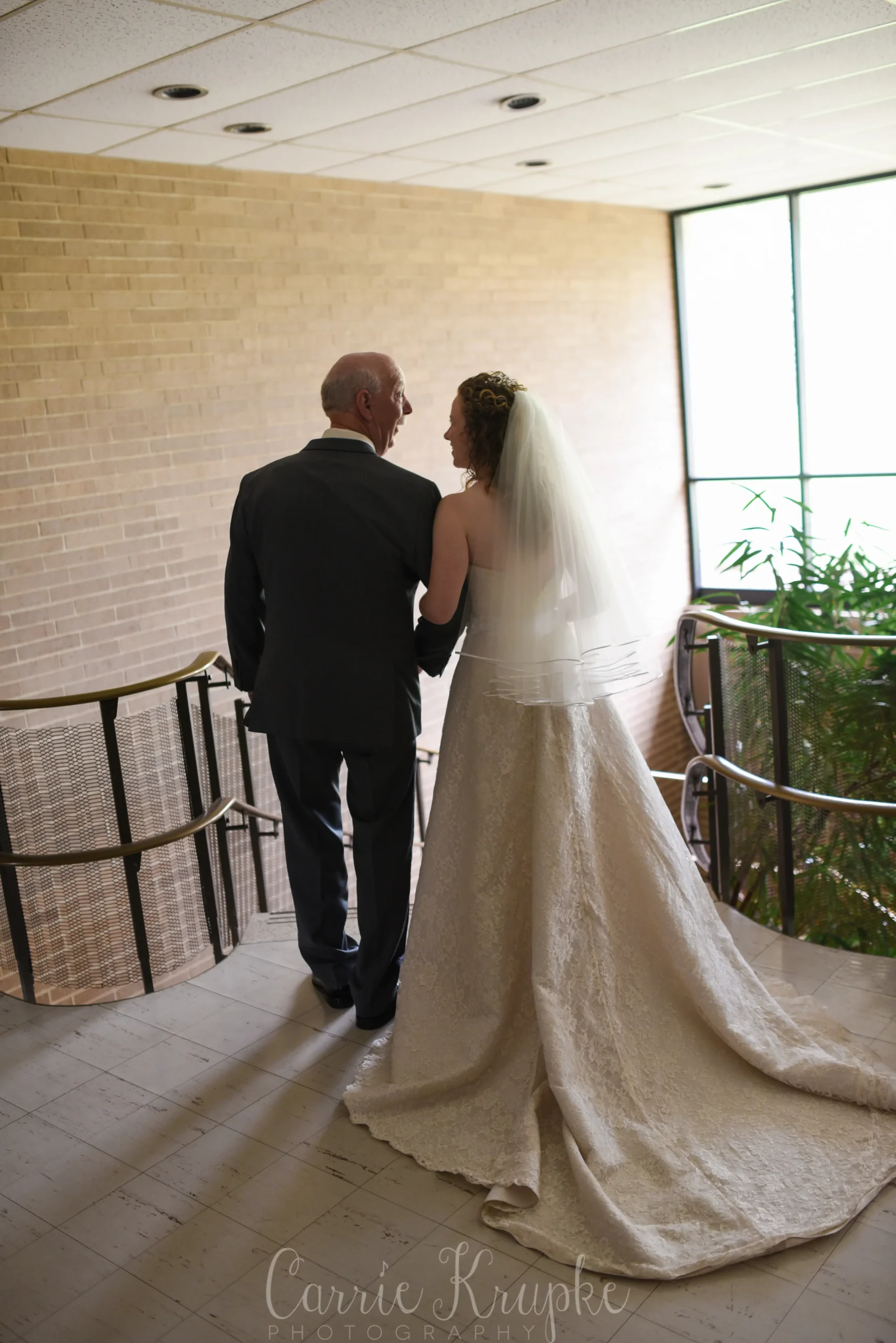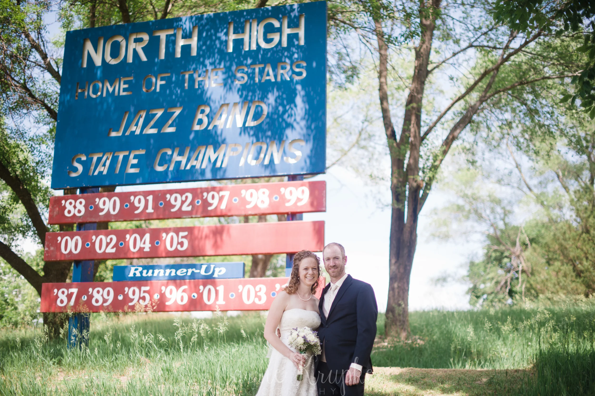 After getting all spiffy, Ali + Mark had their First Look at Mark’s alma mater and where he taught: Sioux City North High School. And yes, we even had a few students drive by and honk their horns!