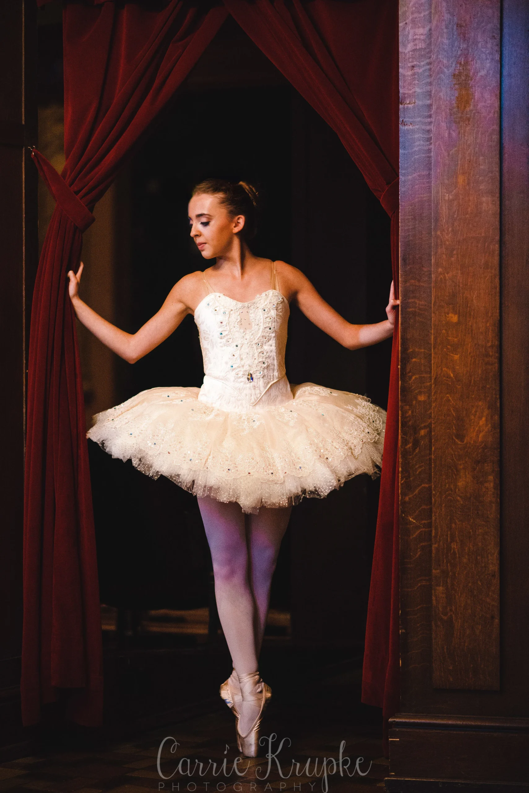 Emalyn piroutted her way through our band room in 6th grade and chose to pursue and leap headlong into ballet. My heart was sad to see her go, but comforted that she was still in the Arts and it seems to be a fantastic fit for her! She has performed with Ballet Des Moines and their production of The Nutcracker in just about every character in the plot and this year, has been selected to be a trainee for them this upcoming season! It only seemed natural that we start her session in a spot that she has spent so much time in during those performances: Hoyt Sherman .