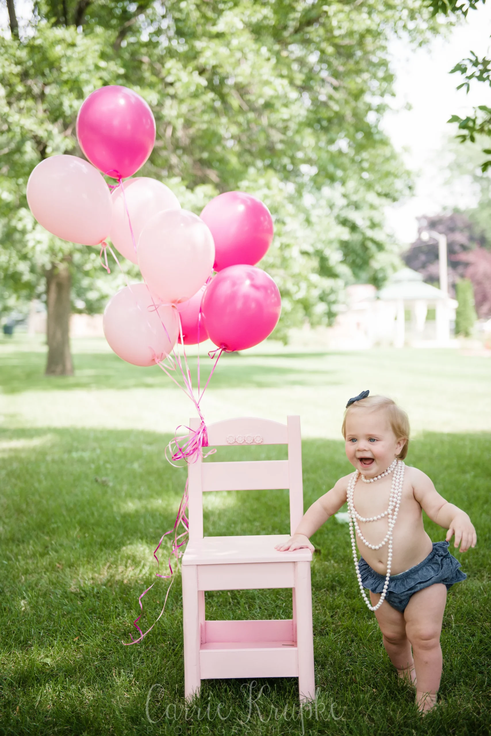 Each session, Ava’s mommy, Jen, has done a slam-dunk job of finding props that mean something to their family. This chair is a perfect example: to make it extra meaningful, Jen added some flowers that were decoration in their wedding, then spray painted over everything for a cohesive look. With Jen’s props, adorable baby chub and pearls? How could you go wrong?