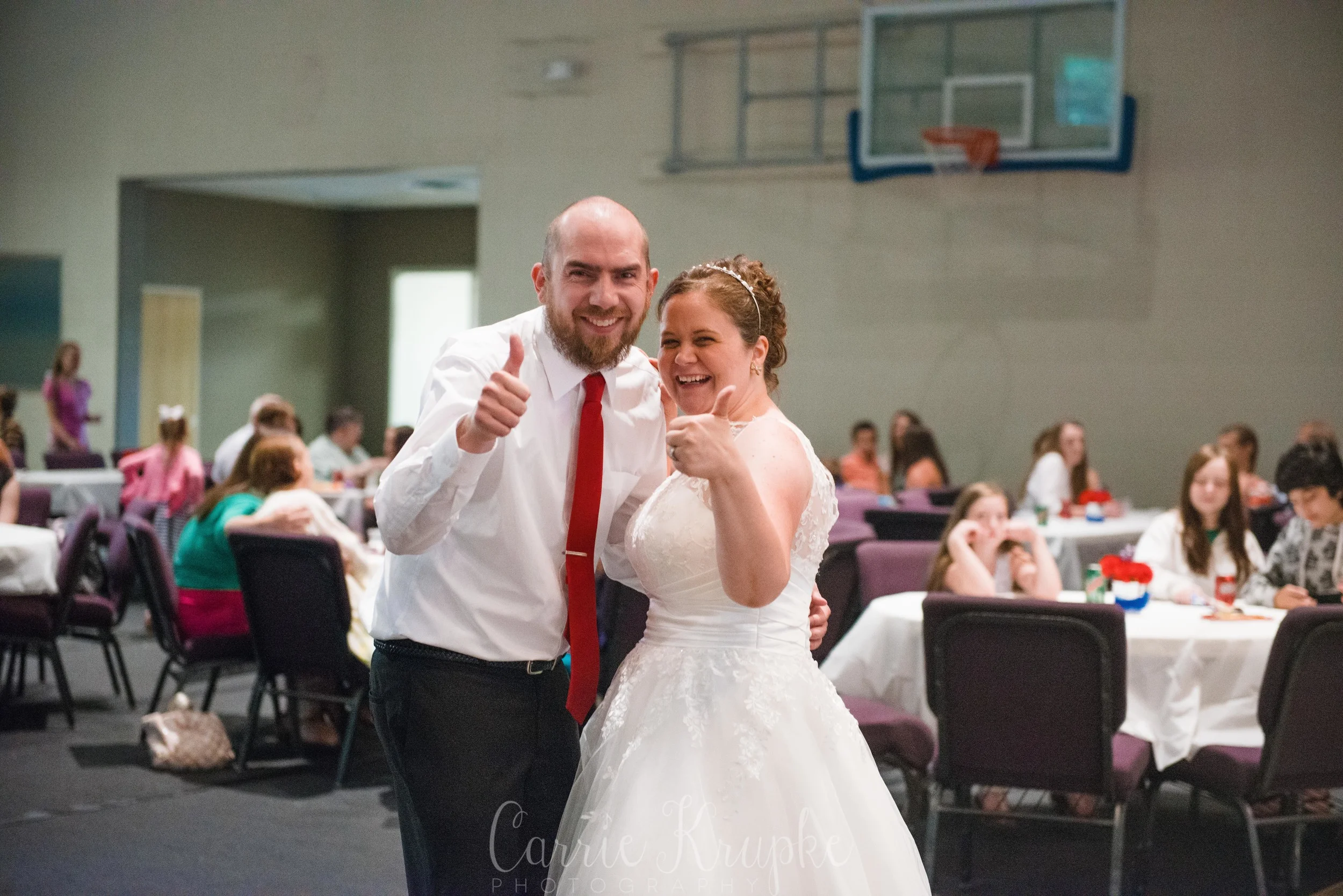 I, along with everyone else in the room, thought that there were just going to be the typical dances: First Dance, Father/Daughter, Mother/Son. But what no one knew, except Kyle, what was to come after those were completed. Kyle, true to form as a basketball fan, rallied the fans that made up his bridal party and helped them lead their guests in a rousing dance of the Hokey Pokey. A one-of-a-kind reception and one we won’t forget any time soon!!