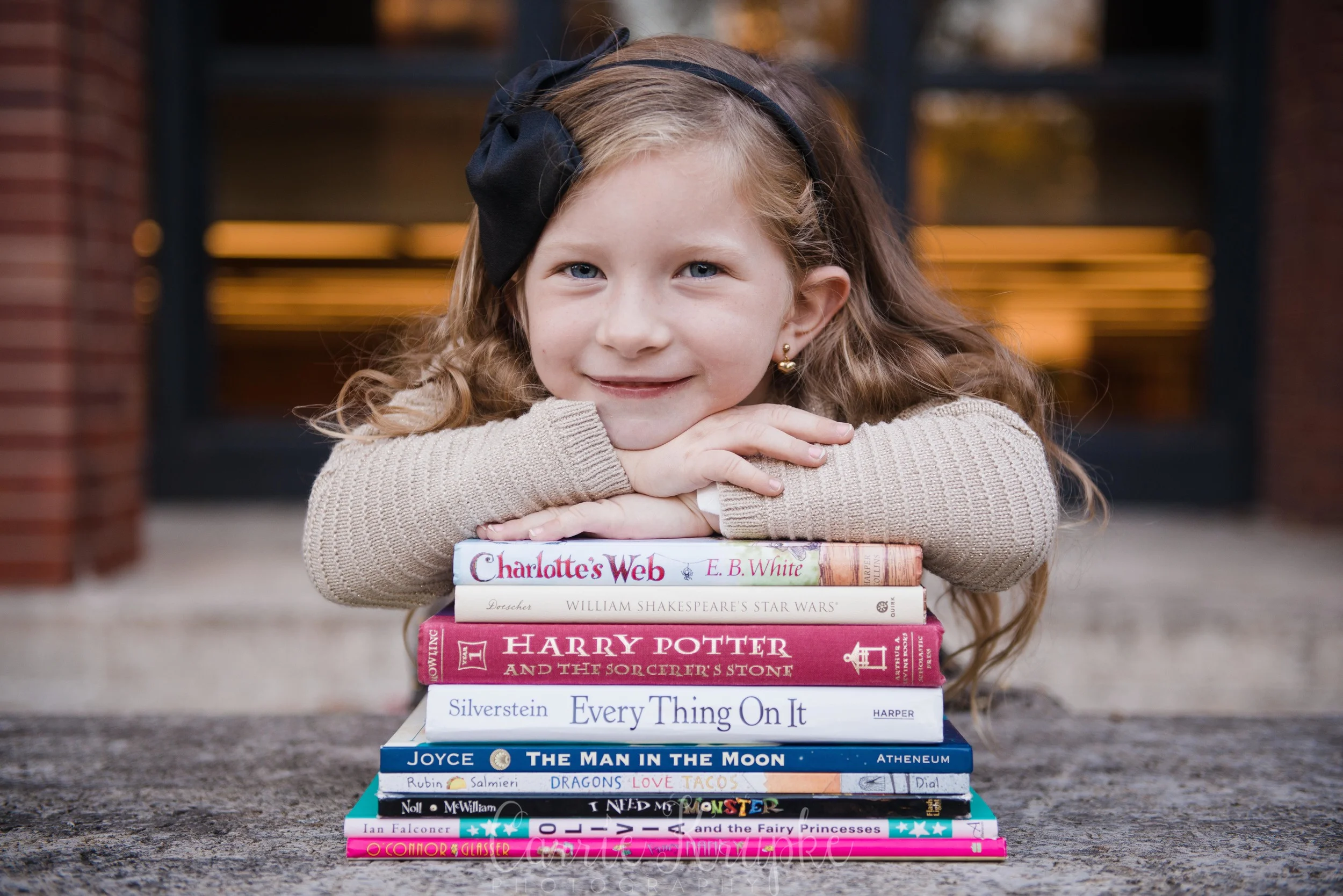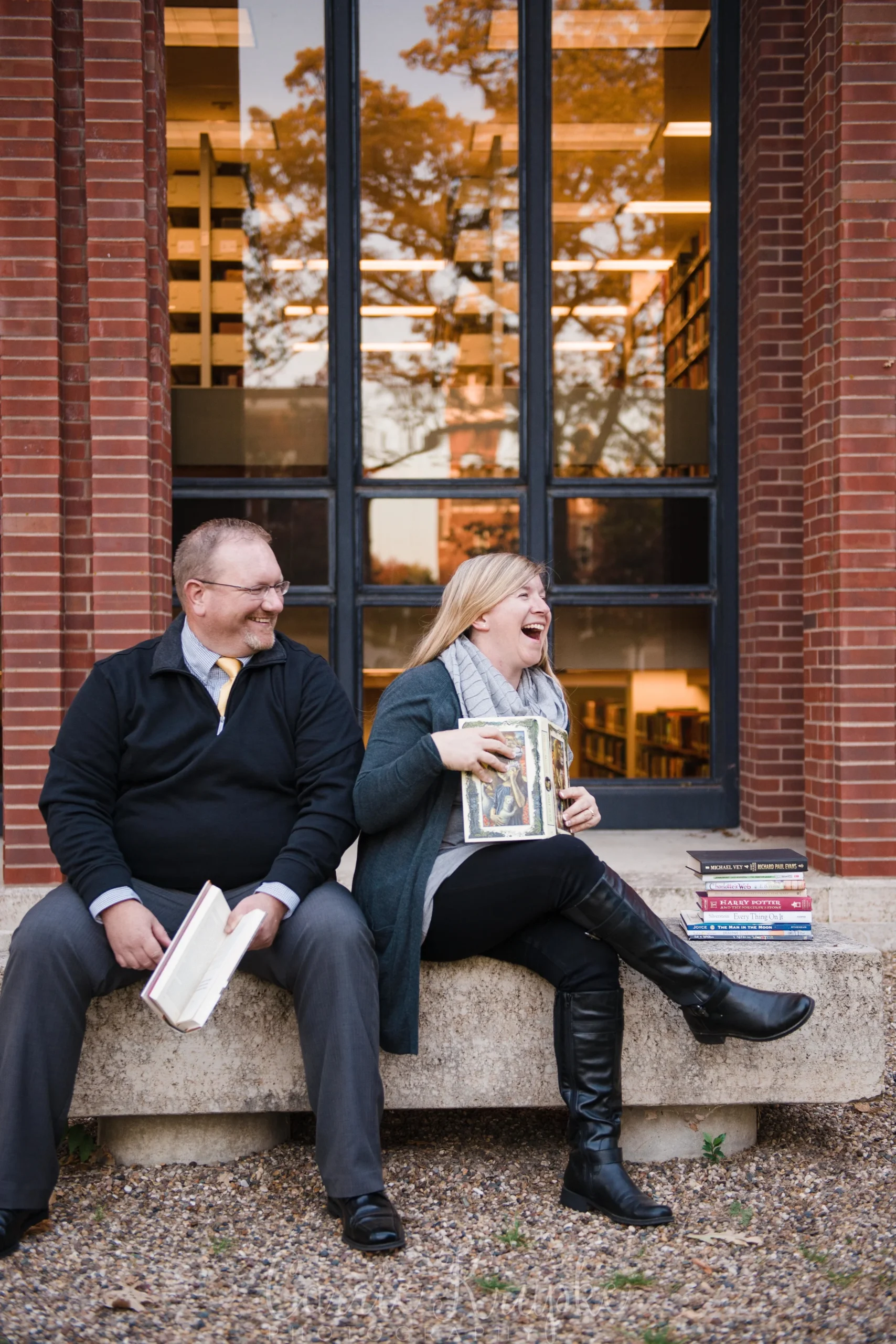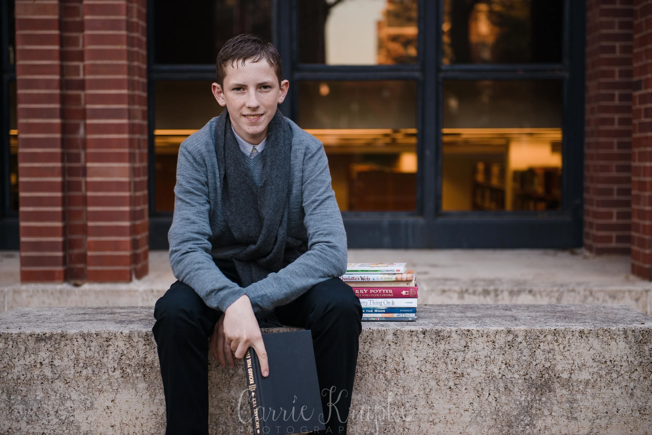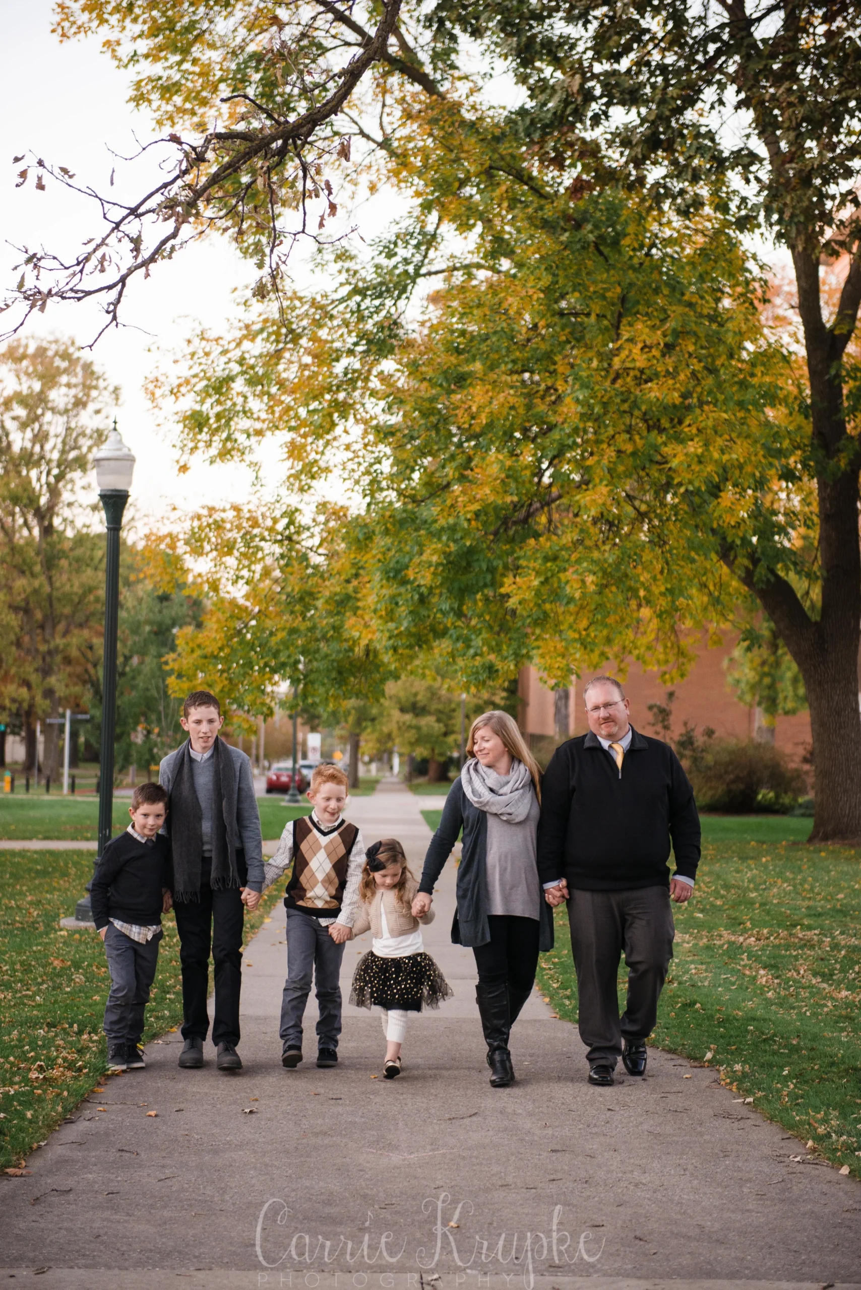 I think it’s safe to say that Twitter gave me the gift of this family session. I started calling out the @NHS_Section every time I did a Norwalk High School senior and eventually, the moderator sent me a message asking if I did family sessions. Not knowing who the moderator was, I said yes, and I have a hunch now that it was Mr. Basinger, NHS Principal. He and his wife, Beth, are English teachers by trade, though now Chris is an administrator, so I asked Beth to gather what they were all currently reading for some fun props. We met, appropriately, in front of Drake University’s library, Cowle’s Library and played with the architecture of the building, the books and their awesome-ly fun 4 kids.
