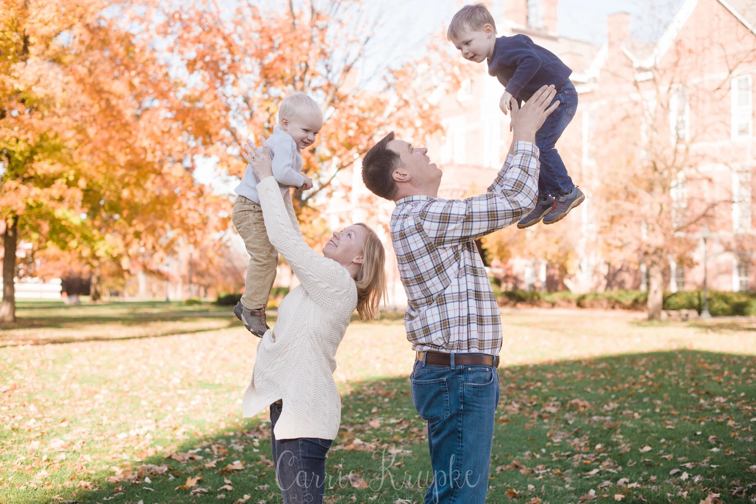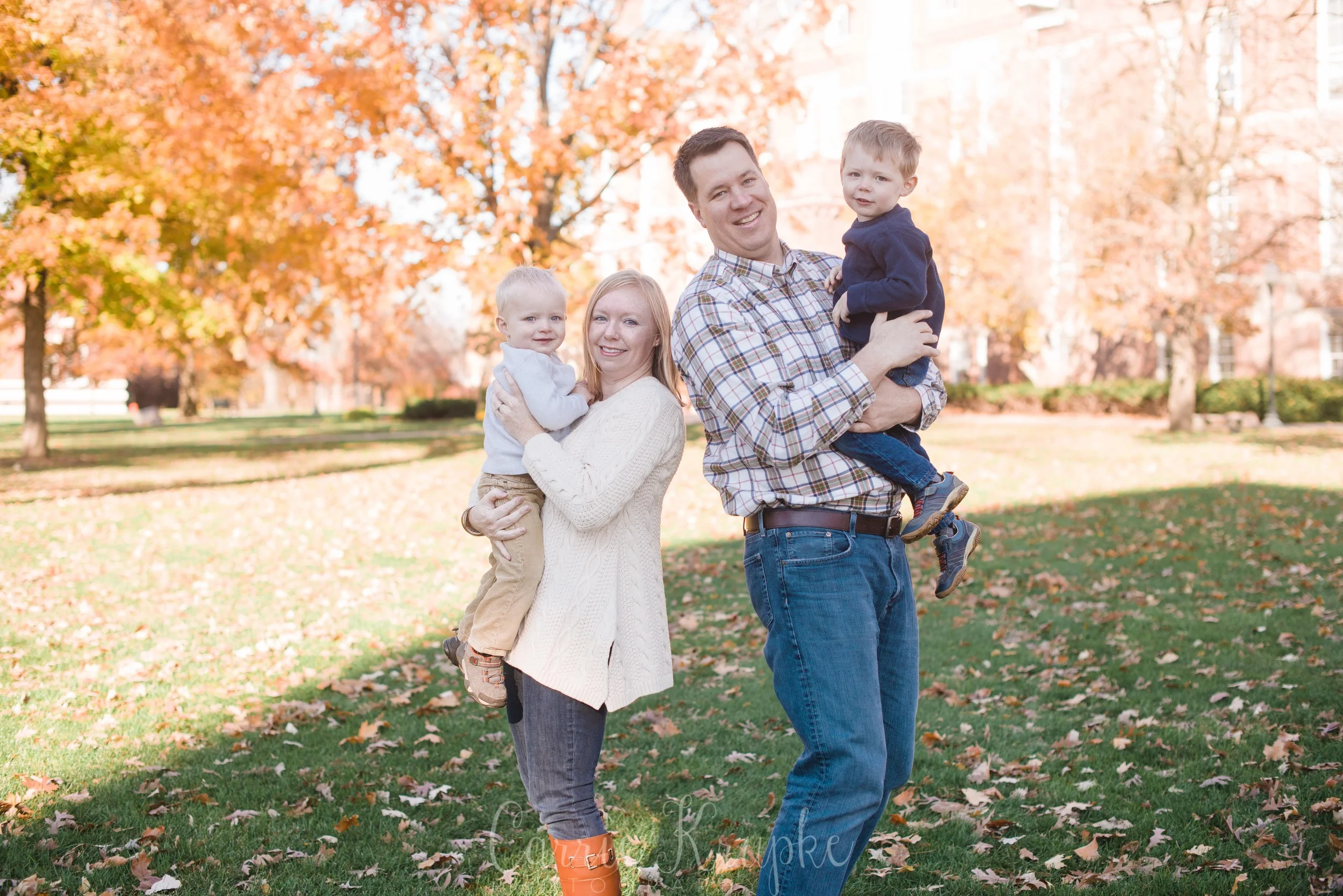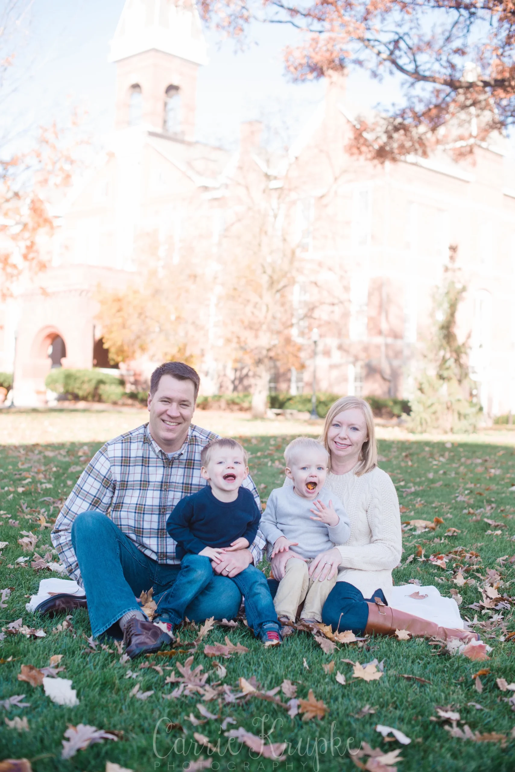 You first met this sweet family last fall on a balmy December Saturday. Somehow, that day was 56degrees and felt like a sauna comparatively for the rest of a typical Iowa winter. This year, Amber contacted me sooner and we got her in a month earlier! Thankfully, we still had leaves on the trees and a gorgeous backdrop at Drake (several of my families this year have requested the colors and architecture Drake has to offer and I’m happy to oblige!)