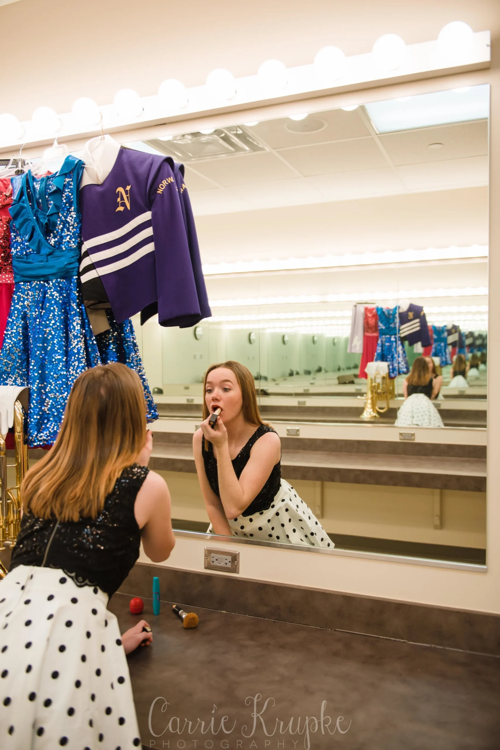 Our school district built a B-E-A-Utiful 900+ seat auditorium a few years back and with it, added on make-up/dressing rooms. What better indoor light could you get without hauling a TON of gear?! We started there and then headed into the auditorium: