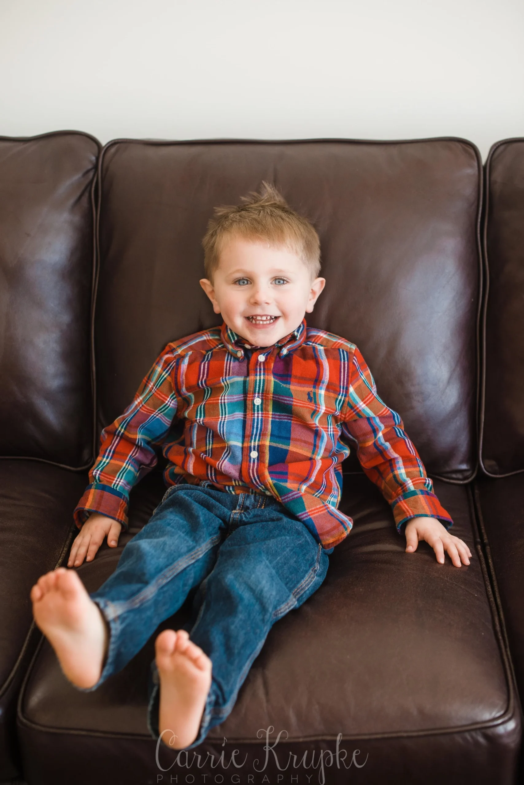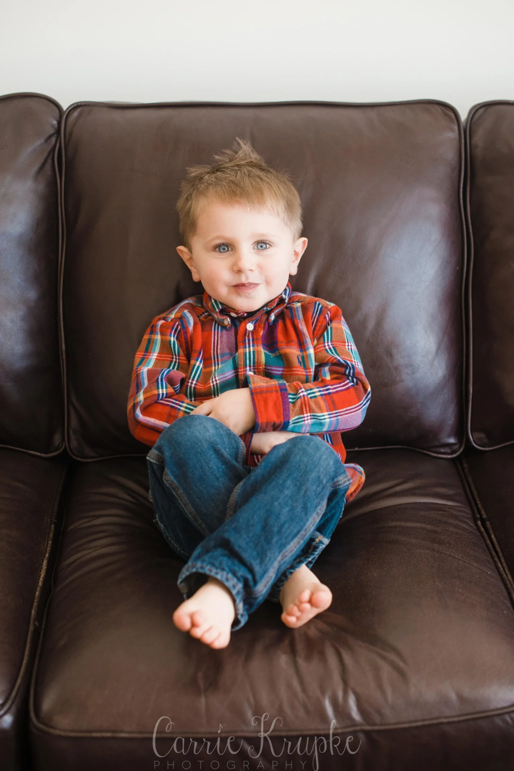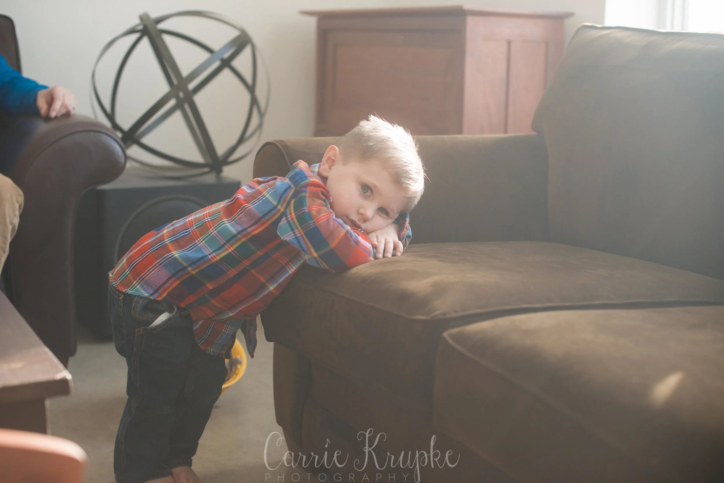 I loved how Erin gracefully scaled her countertop to retrieve some bribes for Truman throughout our session, so I had to document and share her cuteness up there. 🙂 And in our next image, this is how I warm up a 3 year old to my camera…