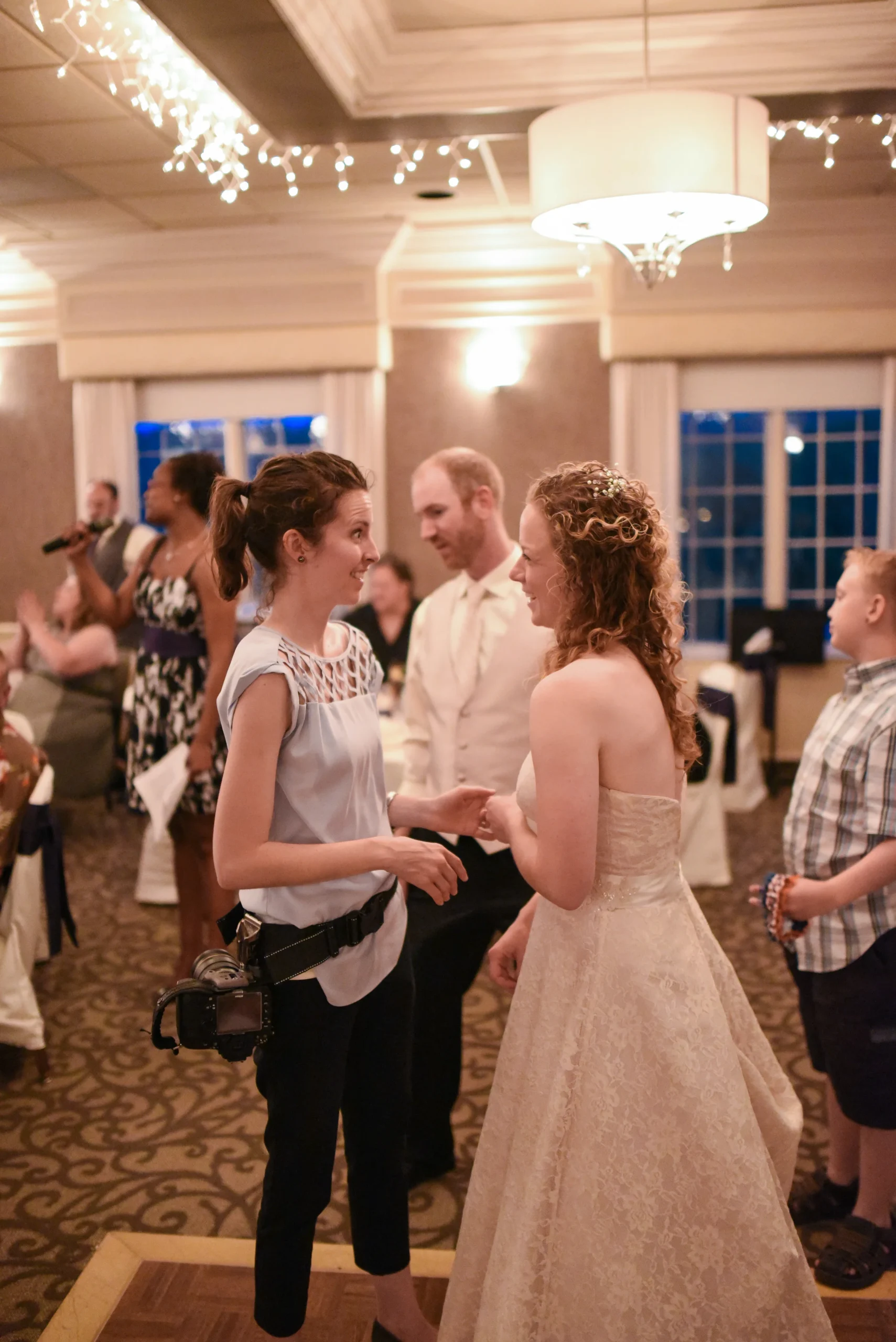 At another wedding this summer, my 2nd shooter saw some great moments when photographers aren’t just working their camera….we wear many hats on a wedding day! (Yes, that is my husband and daughter helping me get light settings right for family photos. . . .And no, that is not a regular occurrence.)