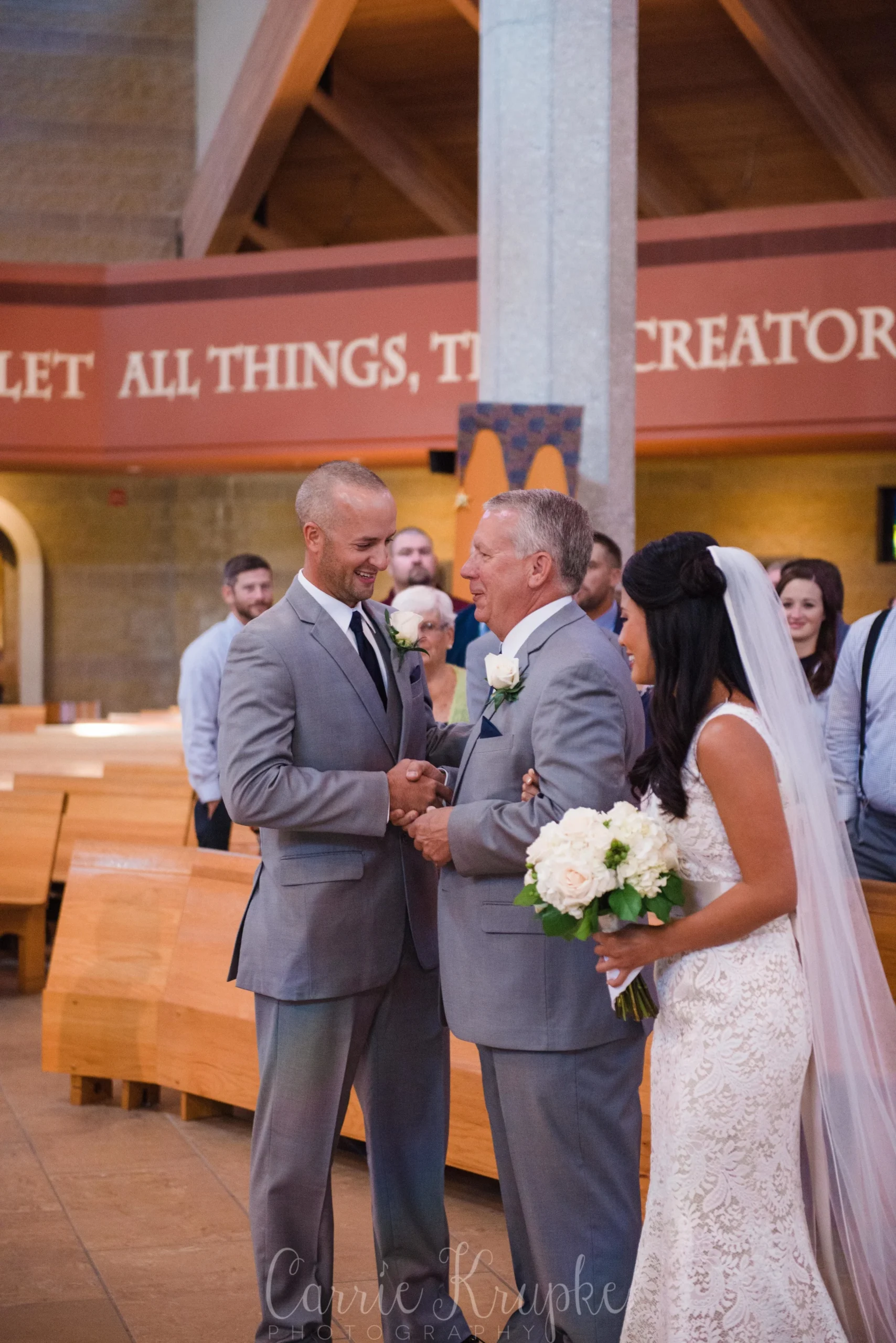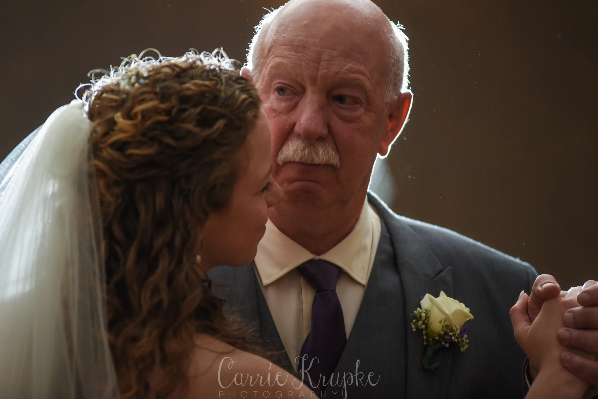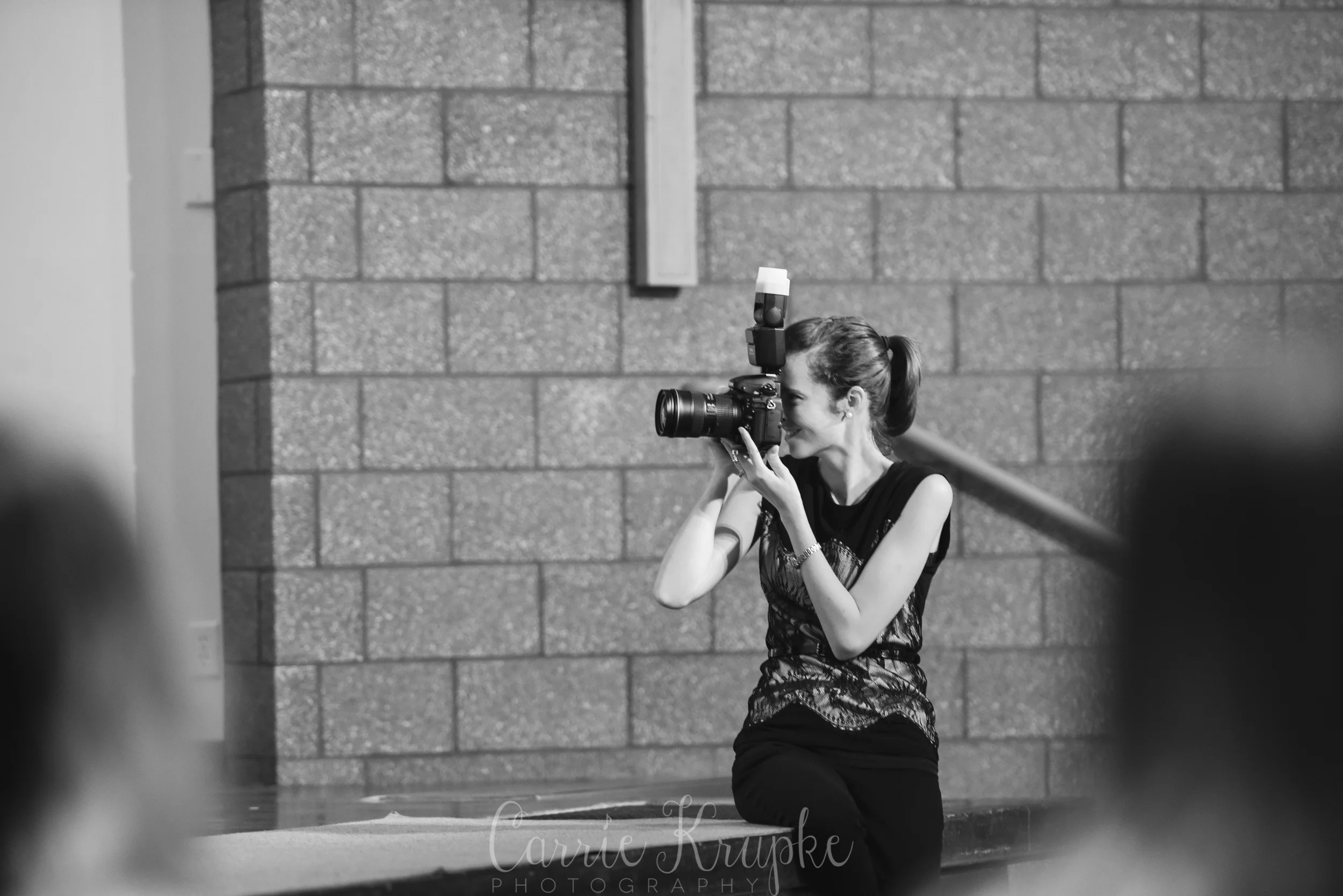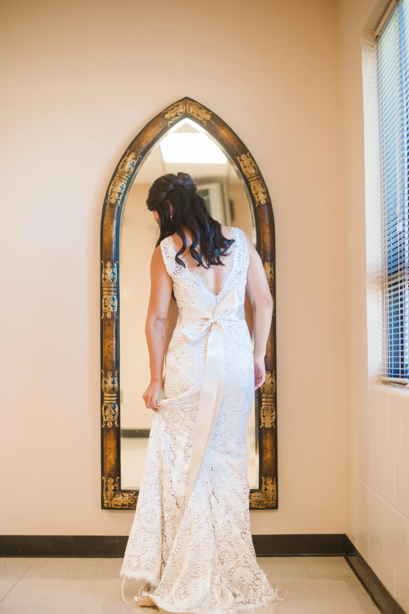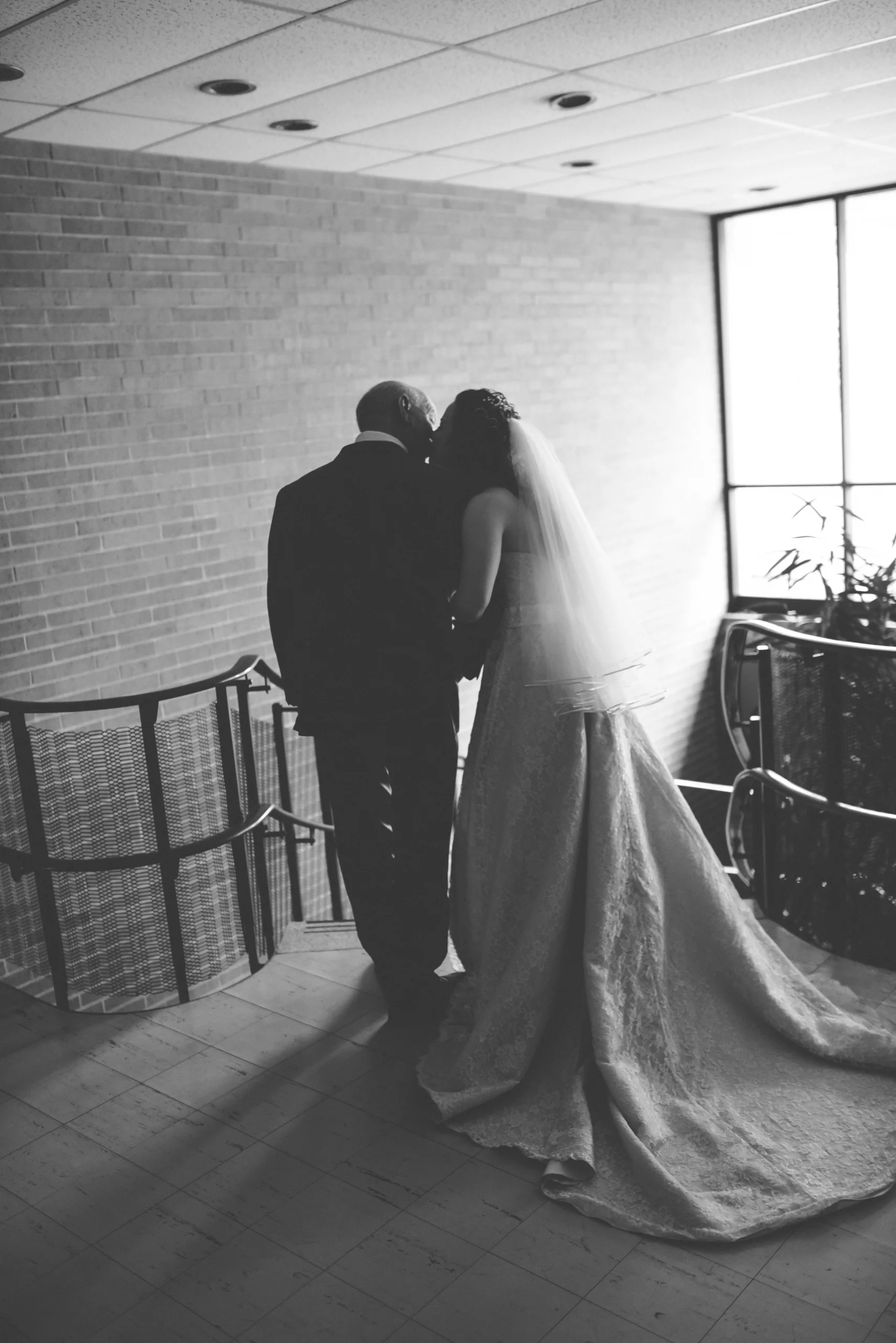 We work really hard and have ended ahead of schedule each wedding this past season (score!), to have family photos done at least 30 minutes prior to the start of the ceremony. This allows the bride to rest her feet, touch up make-up, grab some sips of water or a quick snack and her bridal party to do the same. Meanwhile, my 2nd and I are putting gear away, swapping out camera cards and getting in our positions to capture different angles of the bride’s interaction with her Dad or the special person walking her down the aisle. My 2nd usually stays in the rear while I am near the front: