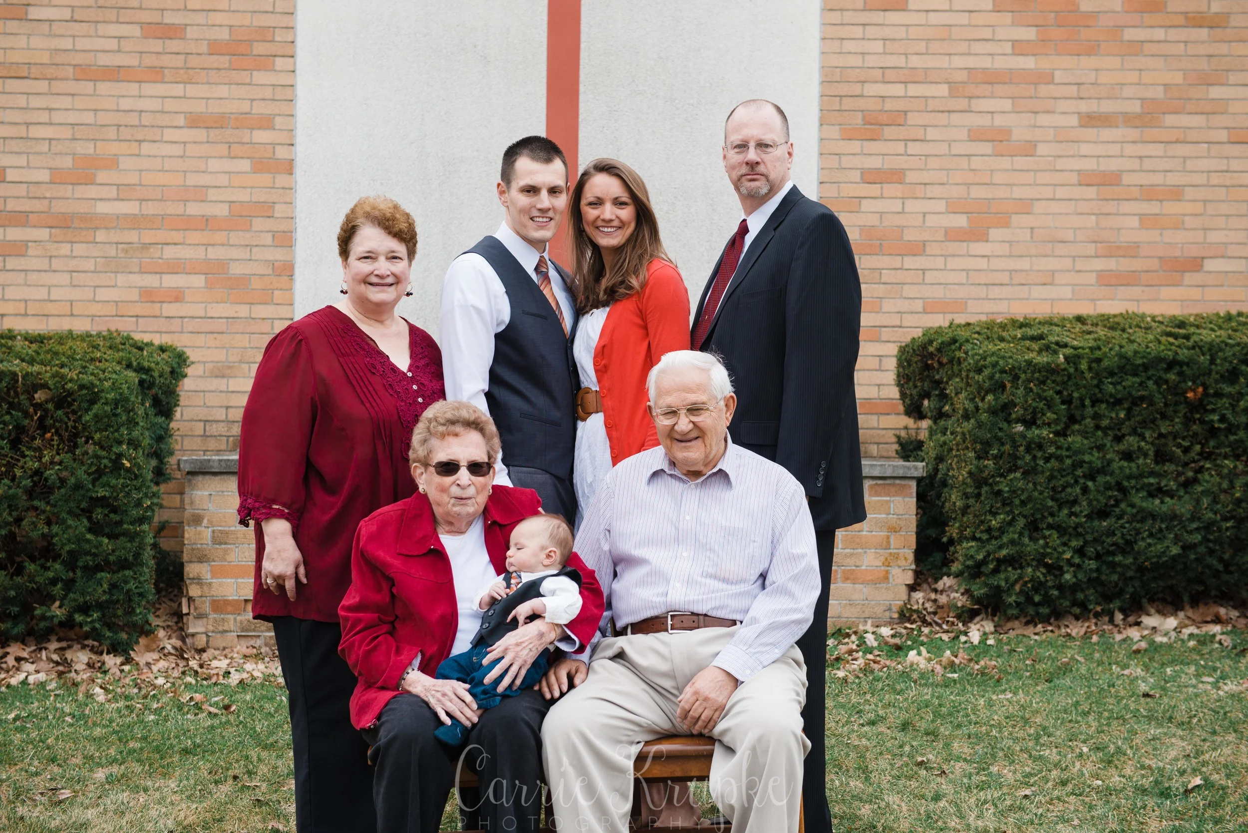 Gerard has had the pleasure of working alongside Mrs. Ward for his first 10 years of his career. Spending that much time with someone, you are bound to share some of Life together. We were blessed to be invited to Alexis and Jeremy’s (Mrs. Ward’s son) wedding several years ago and we’ve watched along the sidelines while Jeremy completed and defended his phD in some sort of physics that’s well beyond the scope of my understanding. While they are currently based out of Washington D.C., he and Alexis made the trip home not only for a friend’s wedding, but to have their precious son, Aiden, baptized with lots of extended family present. Mrs. Ward thought it the perfect time to photograph everyone in attendance (including great-grandparents!) and I couldn’t have agreed more.