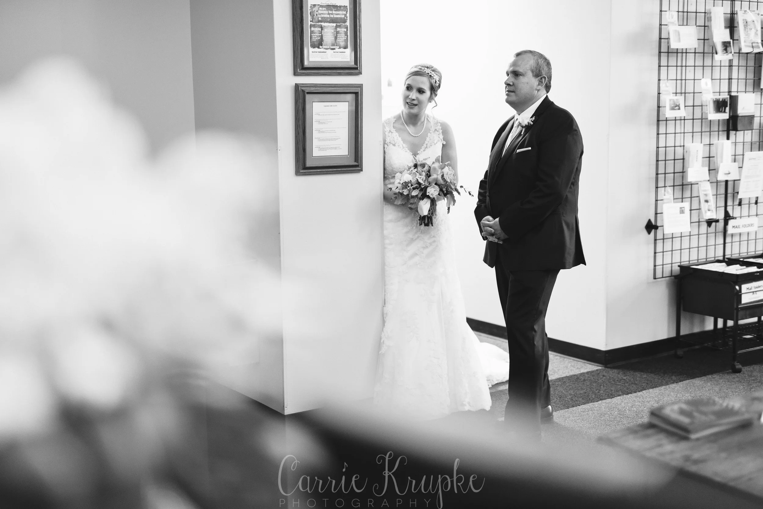Kelsi + Andrew’s bridal party and family were so lovely to work with and photograph (you can see some of them in the slideshow link listed at the end of this post) that we had ample time in between photos and ceremony to collect items and prepare. But when it finally came time to walk down the aisle, it seemed like it had approached so quickly. Here again is a great example of the benefits to having a second shooter. While I was in position at the front of the sanctuary, my second, Austin, was capturing some last moments between Kelsi and her dad: