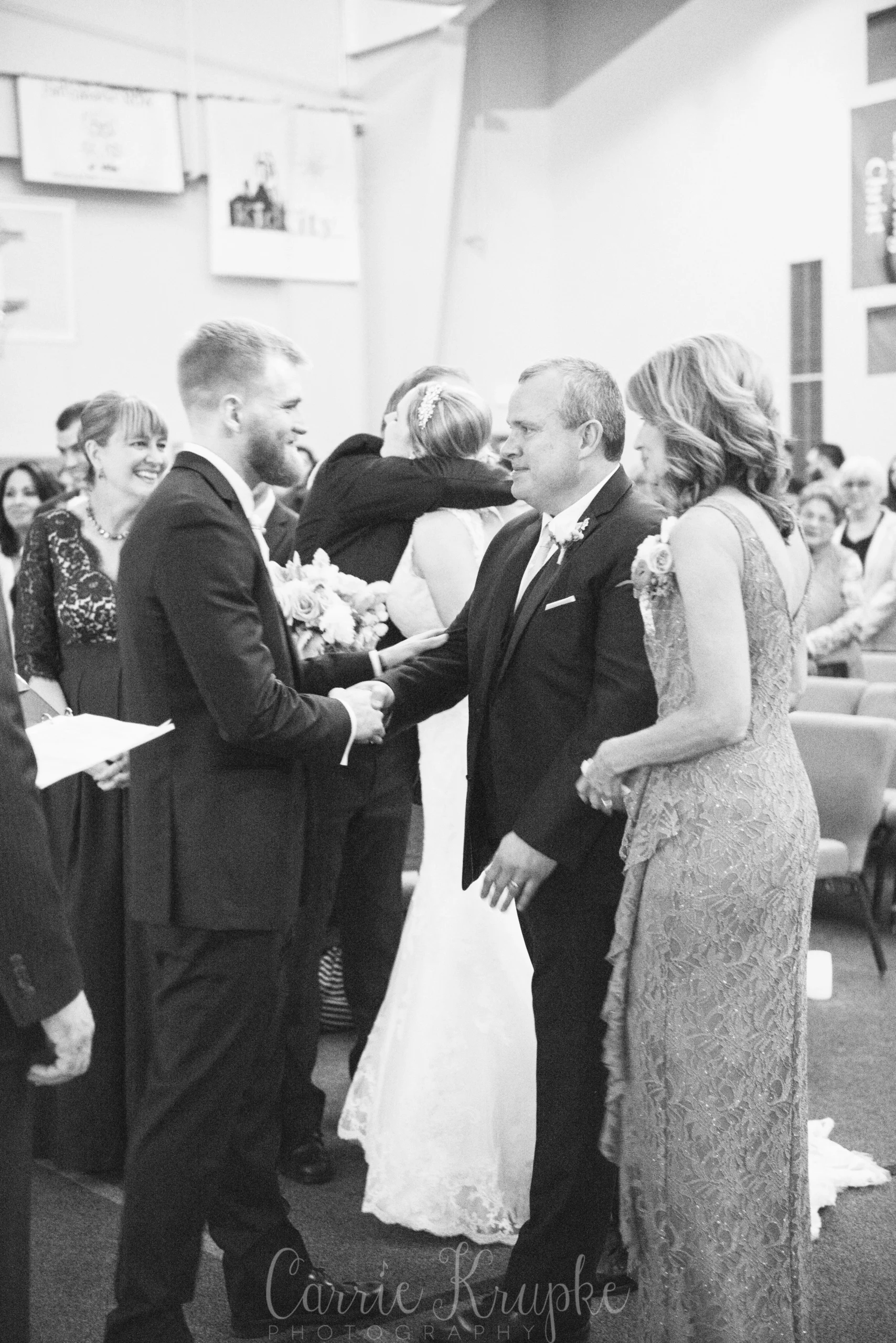 It was so endearing to hear the lawyer in Kelsi correct the grammar her math teacher groom used, but the sentiment remained the same and the tears flowed just as sweetly. (Florals done by the ever amazing Shelly Sarver of Shelly Sarver Designs out of Pella, Iowa. She crafted the altar arrangements on site with hints of tulips as a throwback to Andrew’s Dutch heritage. Absolutely stunning!)