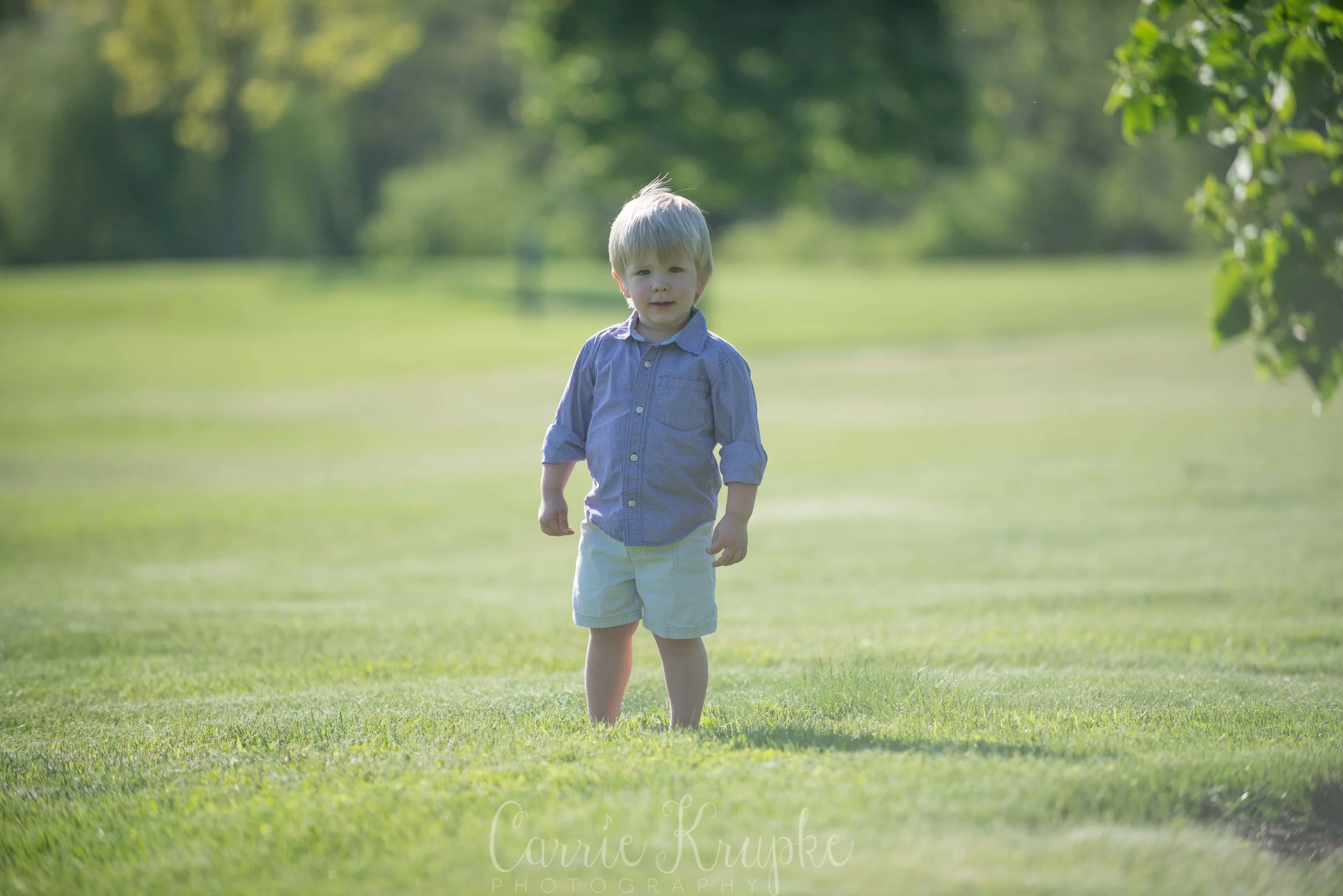 I first met this family on the ground of Central College Campus last year among the hundreds of tulips waving in the breeze. Michael + Heidi met and fell in love there, so it seemed fitting to have their son’s One Year session where it all began. This time around for Charlie’s second birthday, after a long car ride to get to Ewing Park, it seemed perfectly fitting to let him run to his heart’s content among the blades of grass vigorously waving in the strong breezes of the afternoon. A two-year old must get the wiggles out and Charlie did a fabulous job sitting enough seconds for me to nab a few family photos too.