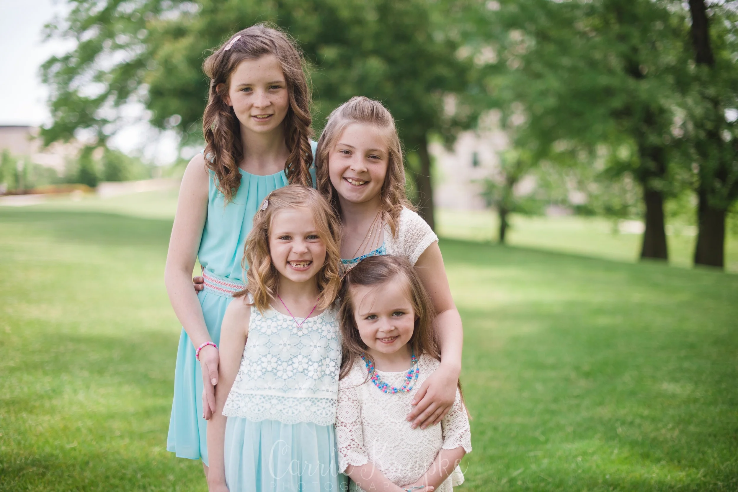 We started with a few individuals of each of the girls, then gathered them together and let them snuggle on each other as only sisters can. Here are Torie, Morgan, Violet and Tess. 🙂